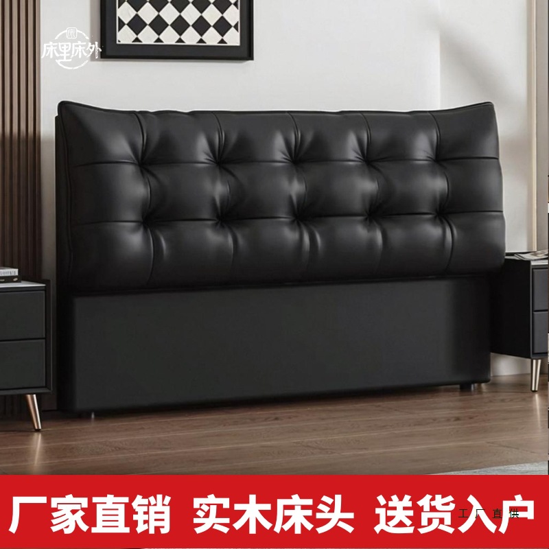 床头软包靠背背板2025现代新款简约一体实木轻奢落地单买黑色