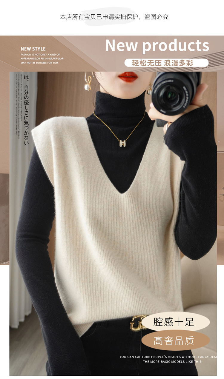 一線の成衣100ウールのセーターの女性の頭のベストのニットの底のセーターの袖なしの外は上着の潮を着ます。