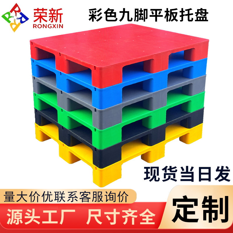 彩色九脚平板塑料叉车托盘货架栈板仓库防潮垫板红黄色超市胶卡板