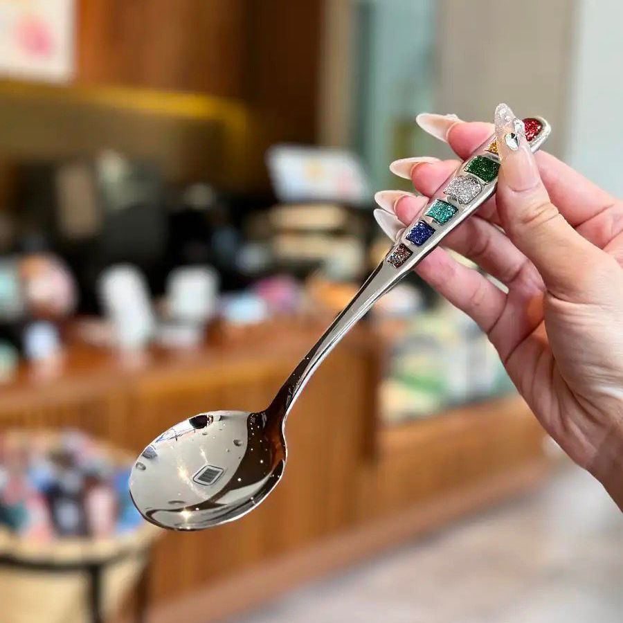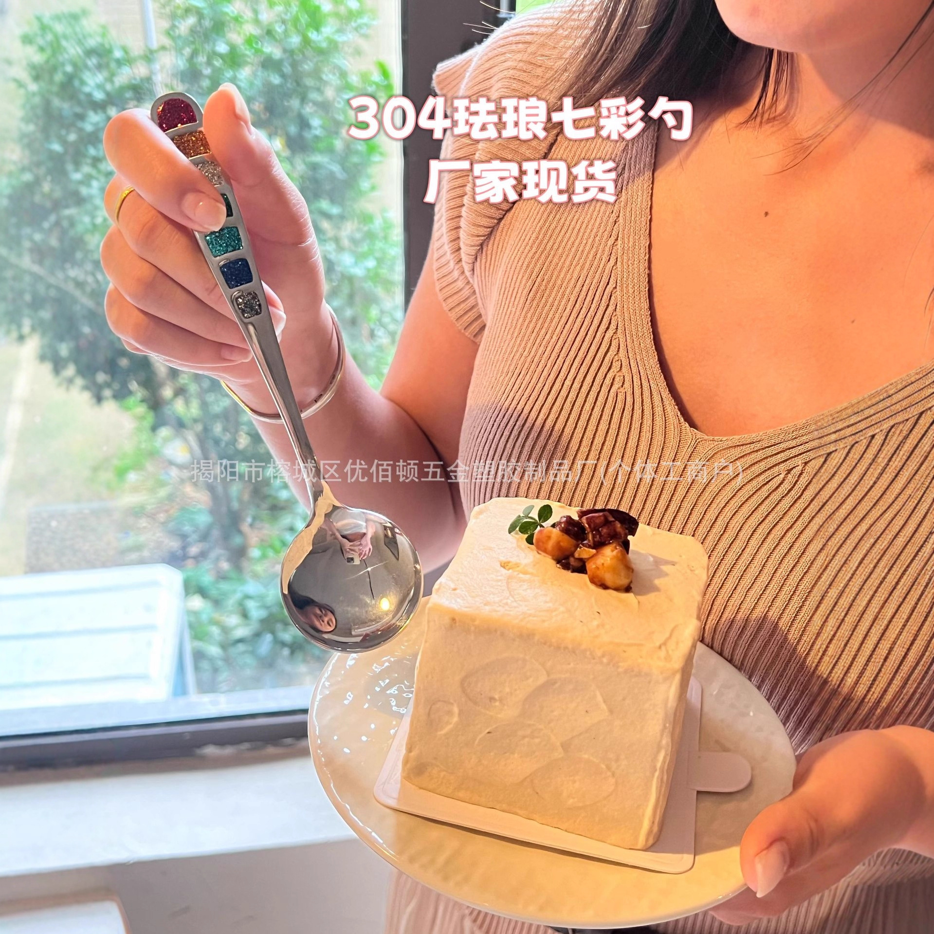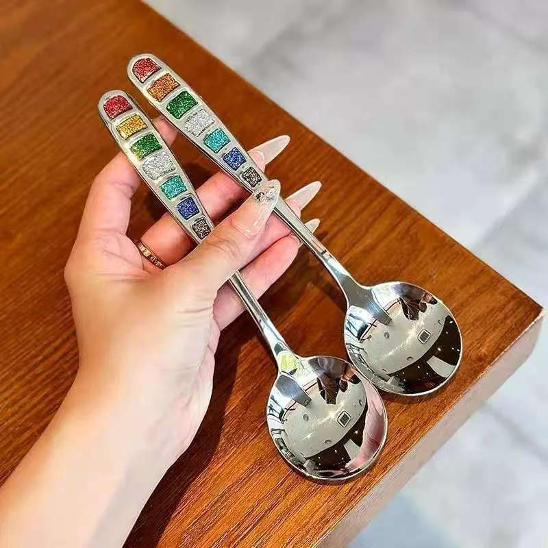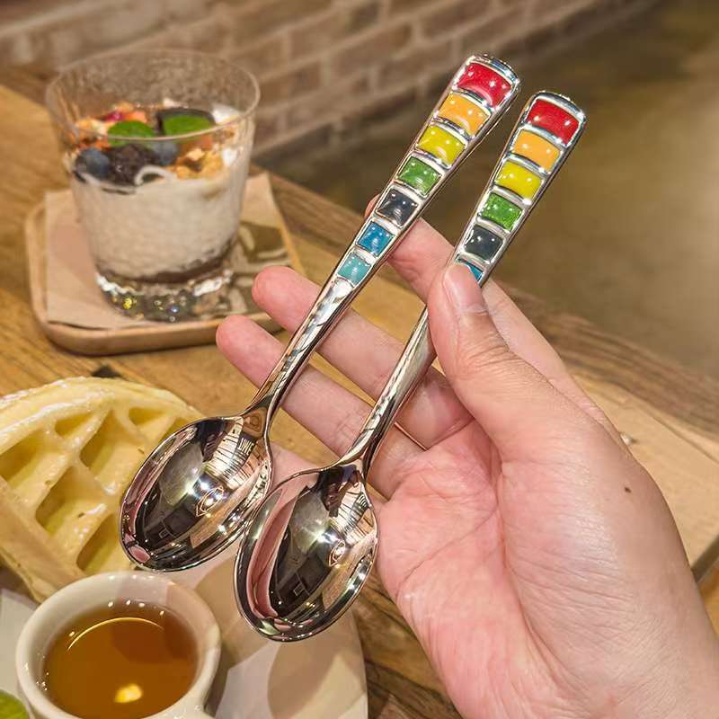 ステンレス製スプーン カラフルレインボースプーン 2025年新作 軽奢 高級感 家庭用 レストラン卸売 デザートスプーン エナメル
