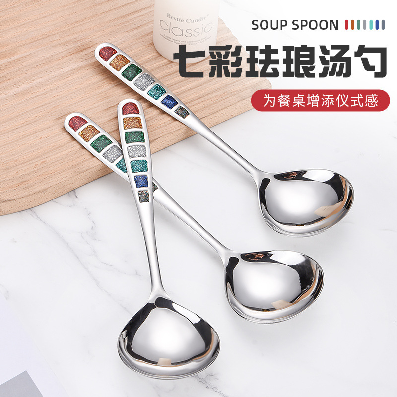 304不锈钢勺子欧式汤匙现货七彩珐琅勺调羹勺餐厅吃饭喝汤勺餐具