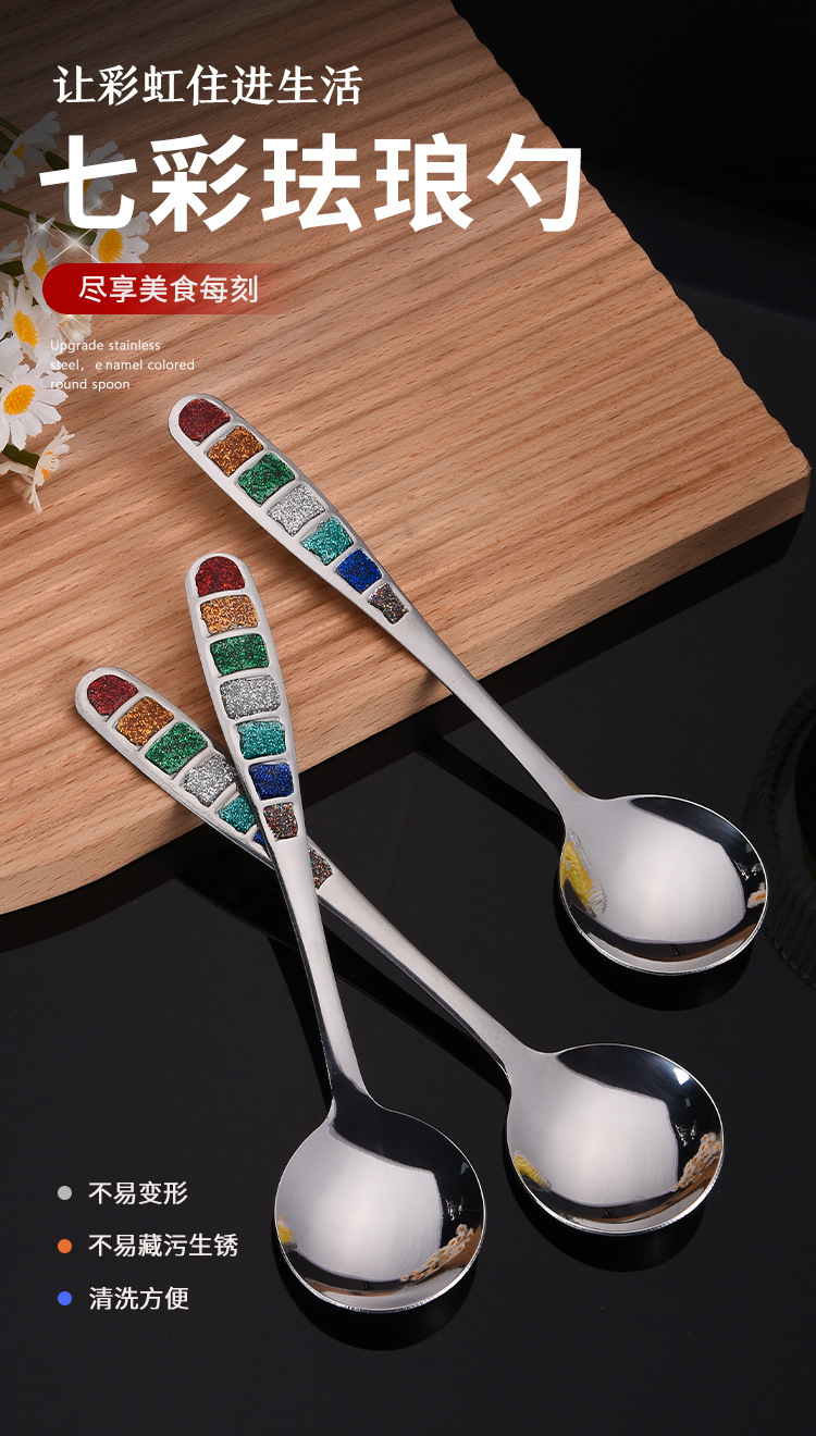 304不锈钢勺珐琅色彩汤勺学生甜品勺调羹高档汤匙高档家用吃饭勺