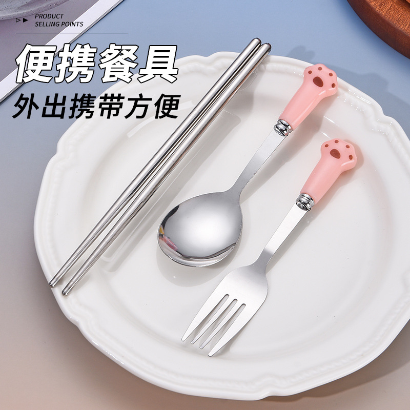 304 ステンレス鋼食器、かわいいセラミックハンドルのデザートスプーン、子供用フードスプーン、ポータブルスプーン、フォーク、箸セット