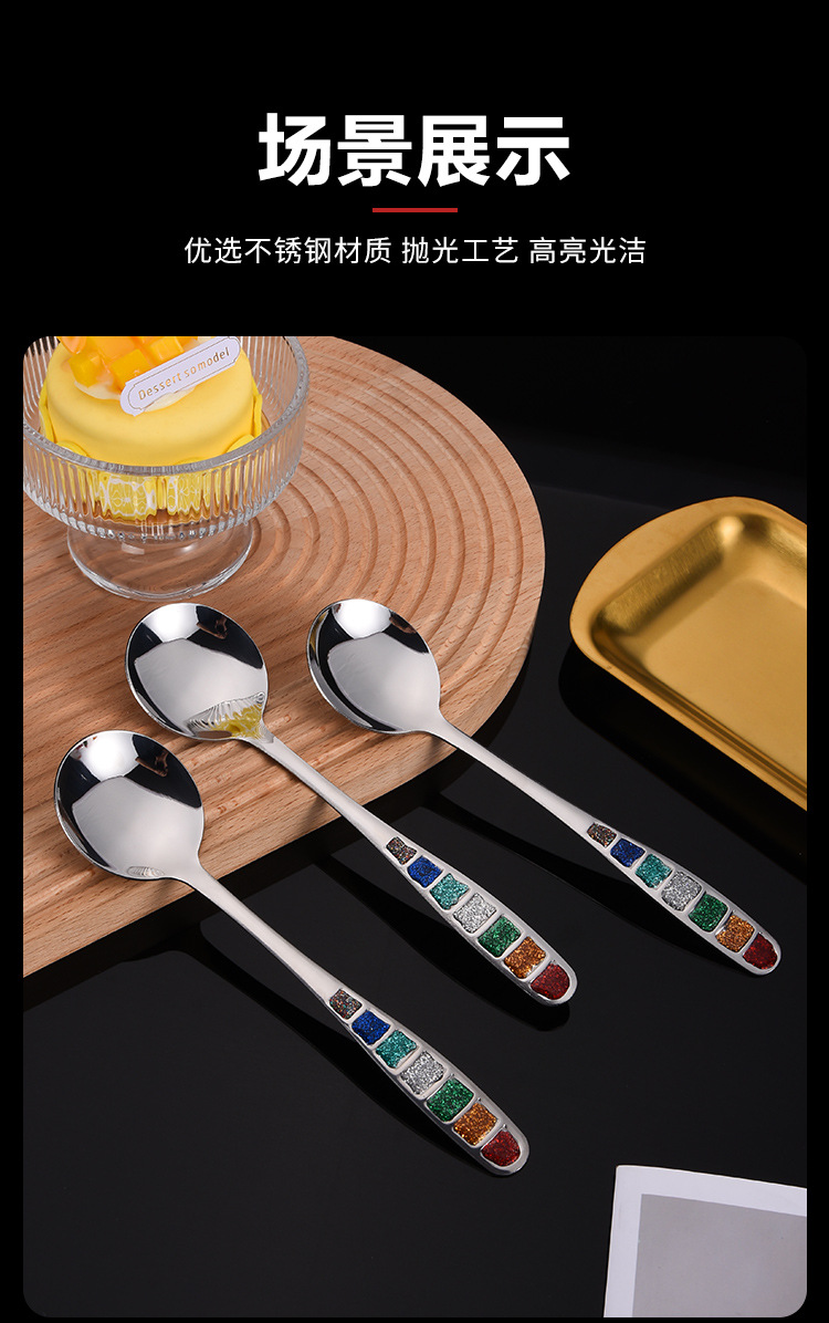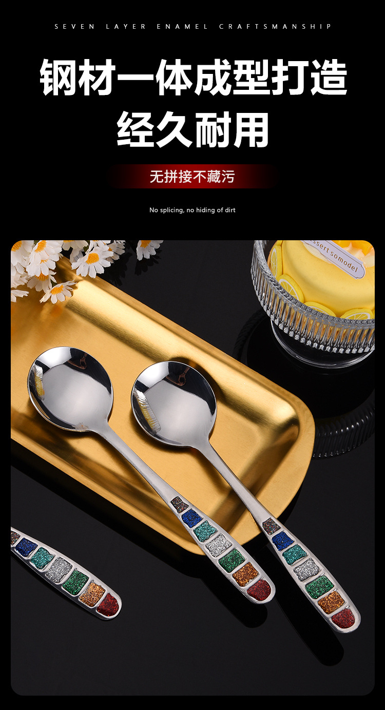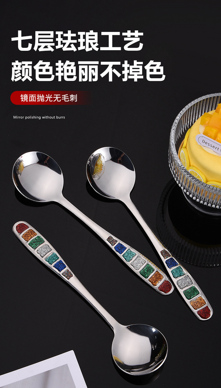 不锈钢七彩珐琅勺欧式贵族勺子西餐汤匙家用饭勺甜品勺调羹勺