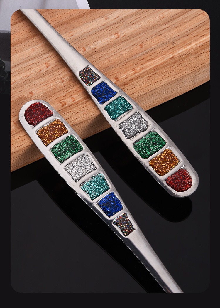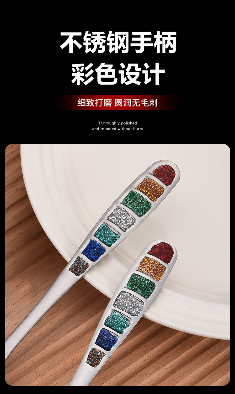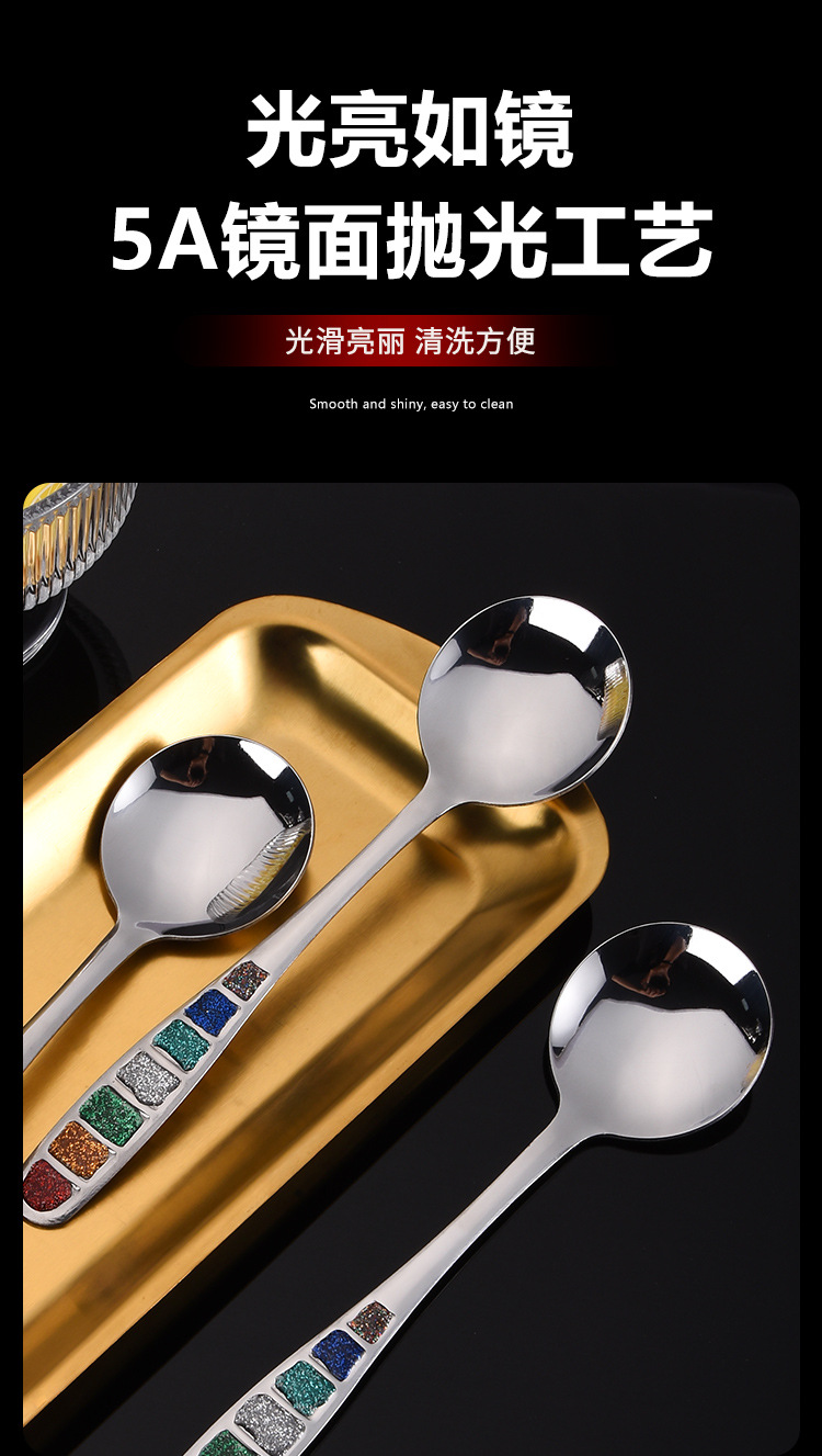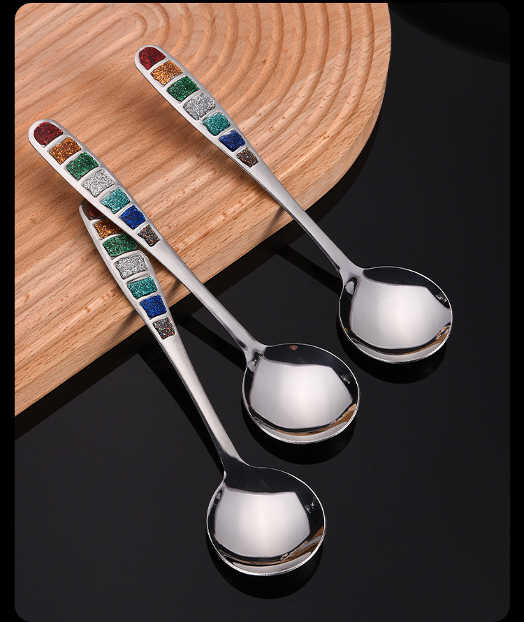 不锈钢七彩珐琅勺欧式贵族勺子西餐汤匙家用饭勺甜品勺调羹勺