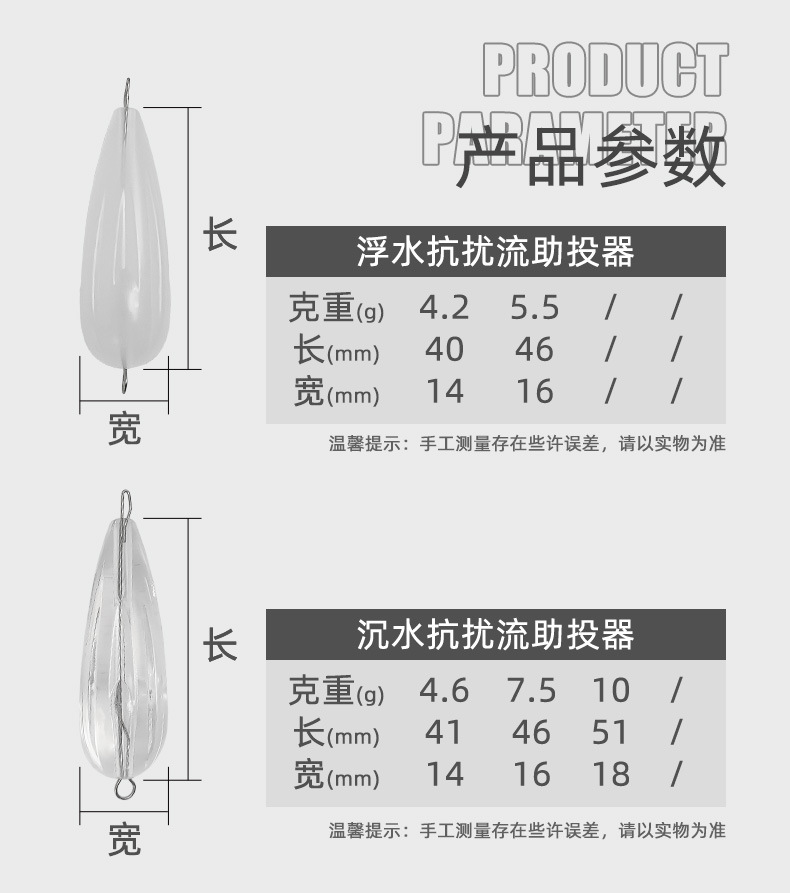 新型安定流溝路亜微物助投器飛ハエ氷糸海老瓜子亮片浮水緩沈助投げ器白条