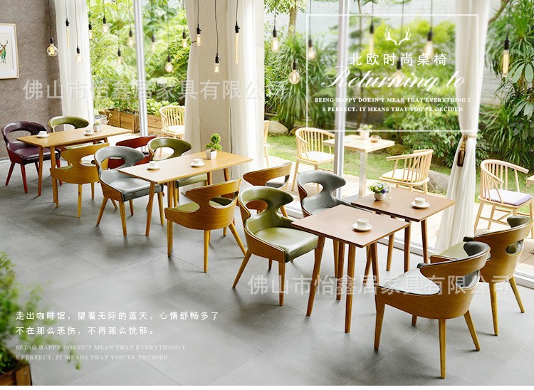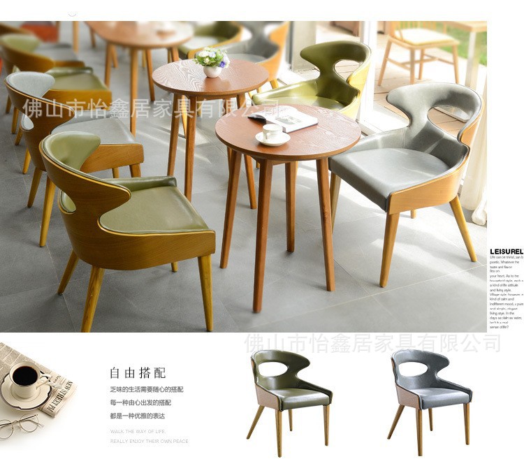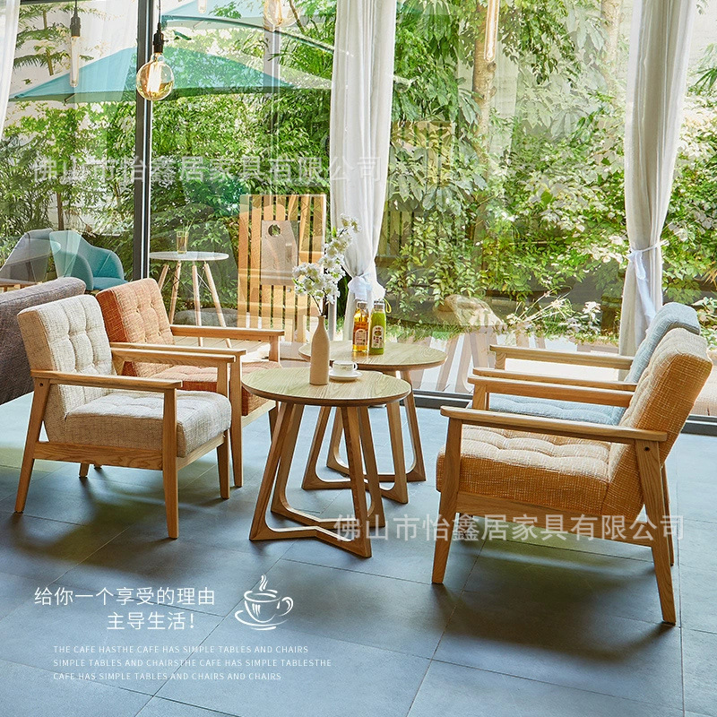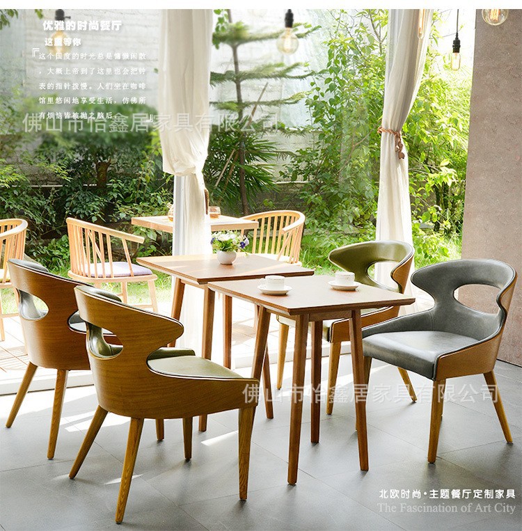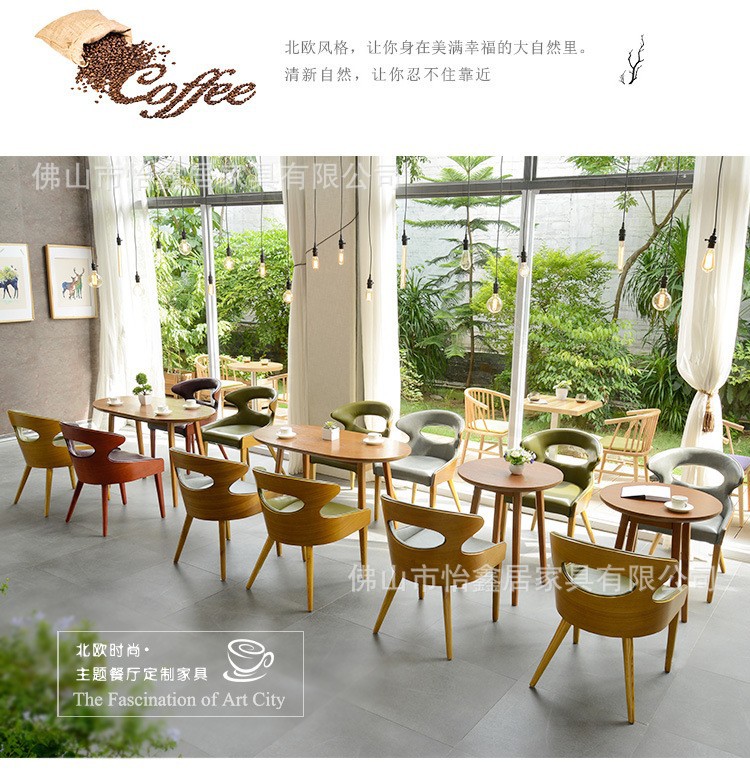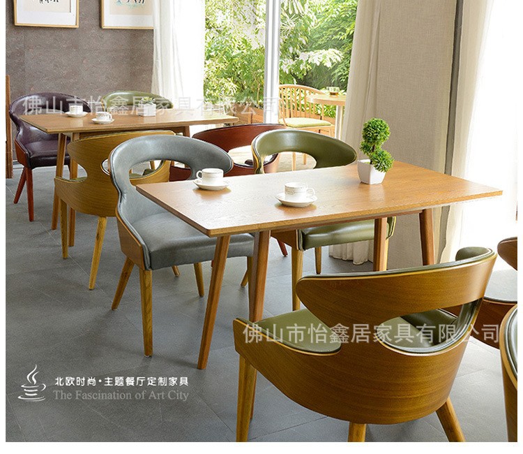 北欧シンプルなコーヒーデザート軽食ミルクティー店レジャー商談閲覧室実木シングルテーブルと椅子の組み合わせ
