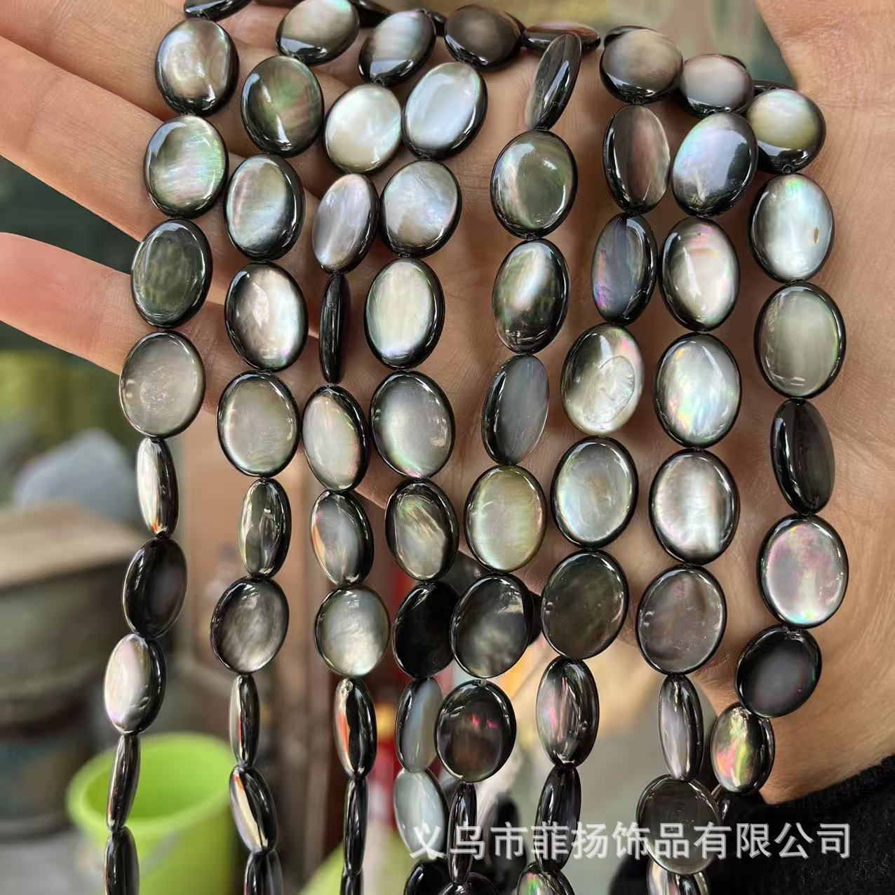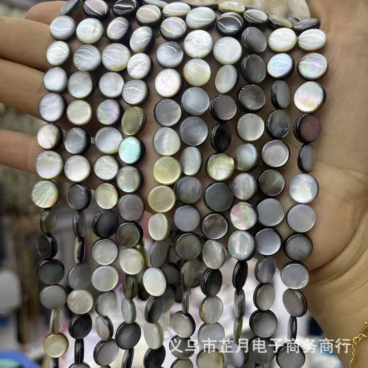 10mm天然黑蝶贝圆片澳洲进口彩光黑贝异形珠海水贝壳饰品配件