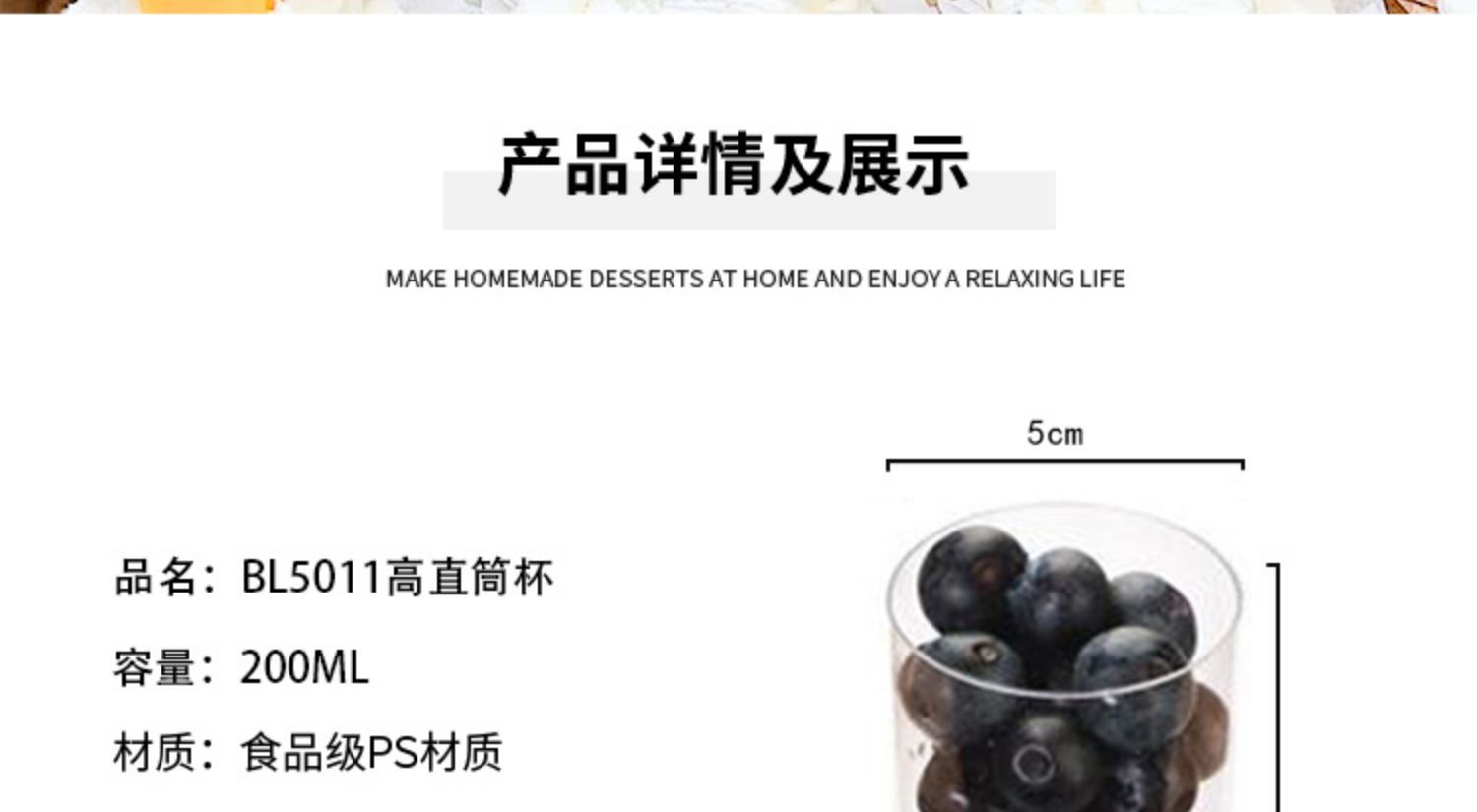 食品グレードの硬質プラスチックムースプリンゼリーティラミスデザートデザートケーキ木ぬかカップ蓋なしストレートカップ