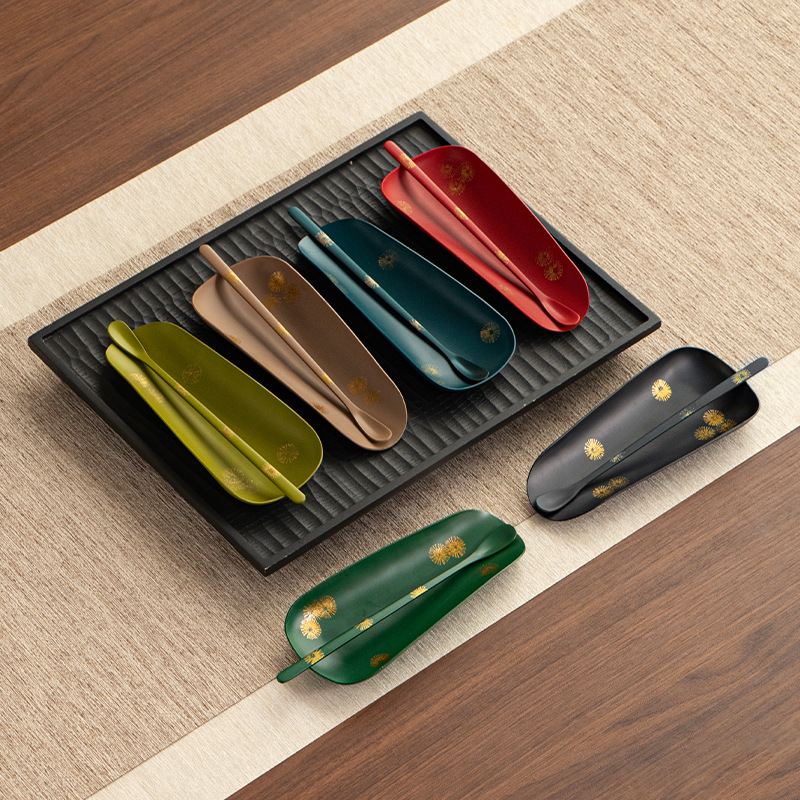 卸売りの手作りの古い鉄の漆の茶則の茶荷の茶器の部品は茶の匙を取ってお茶の荷を鑑賞します。