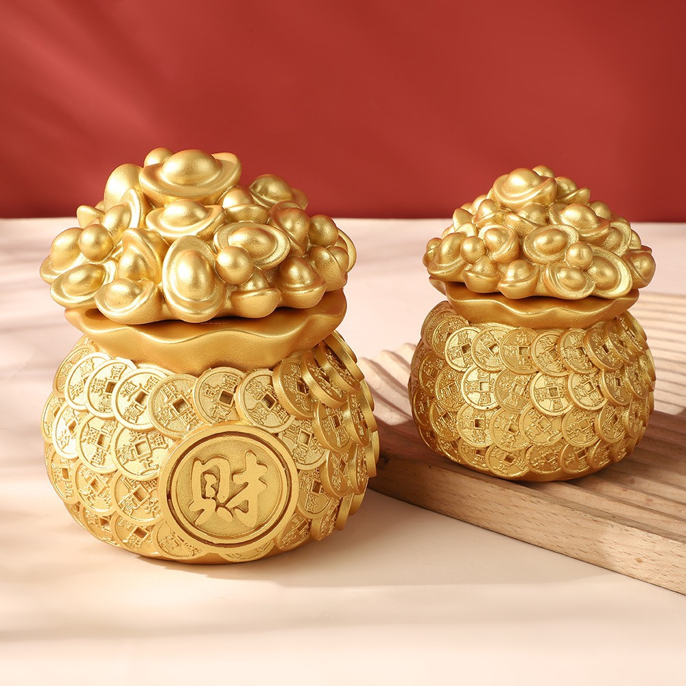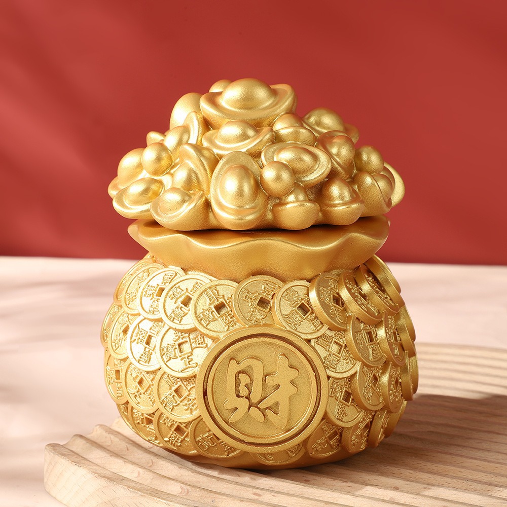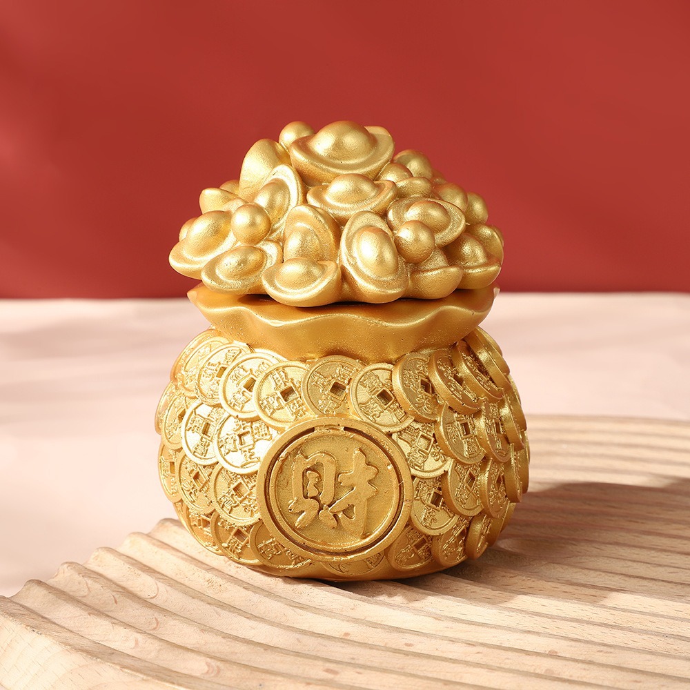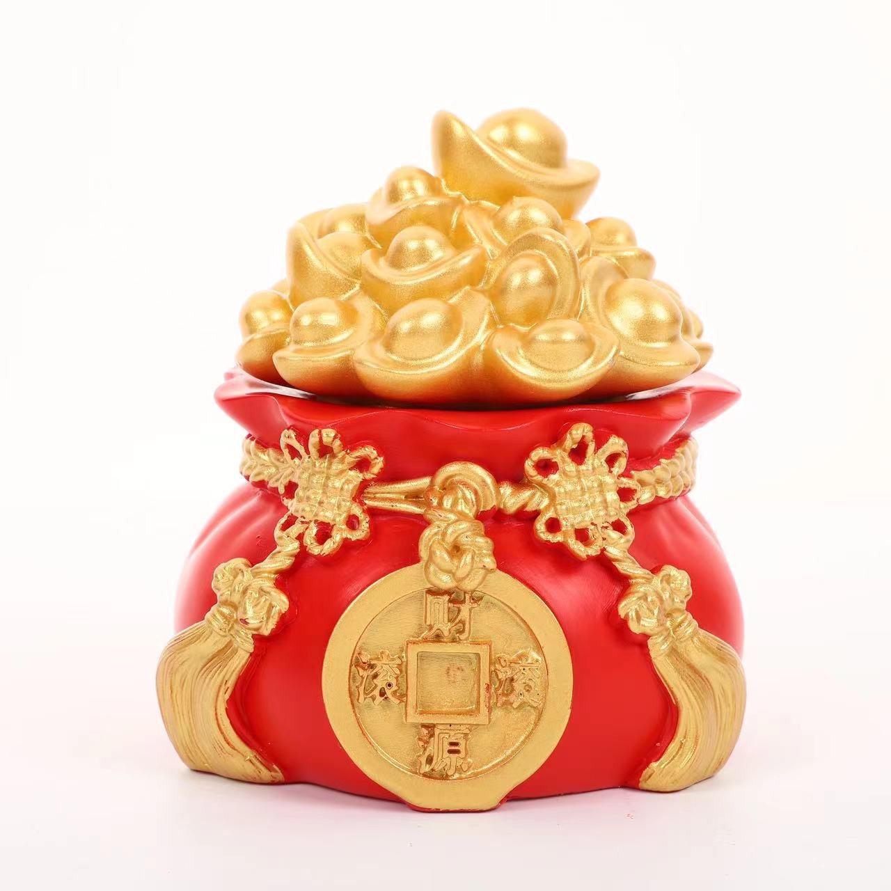招財進宝新年元宝福袋樹脂置物旧正月プレゼント車載装飾宝盆銭袋工芸品