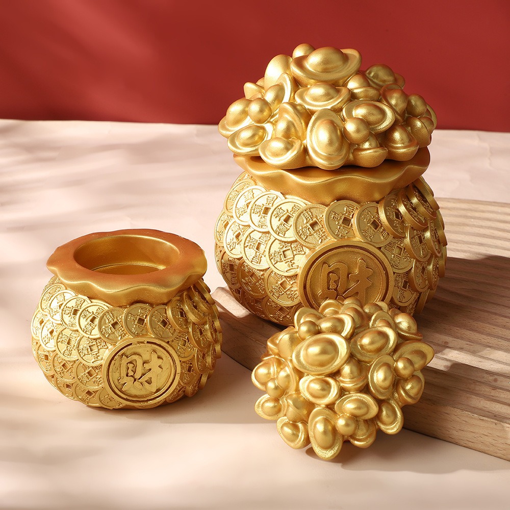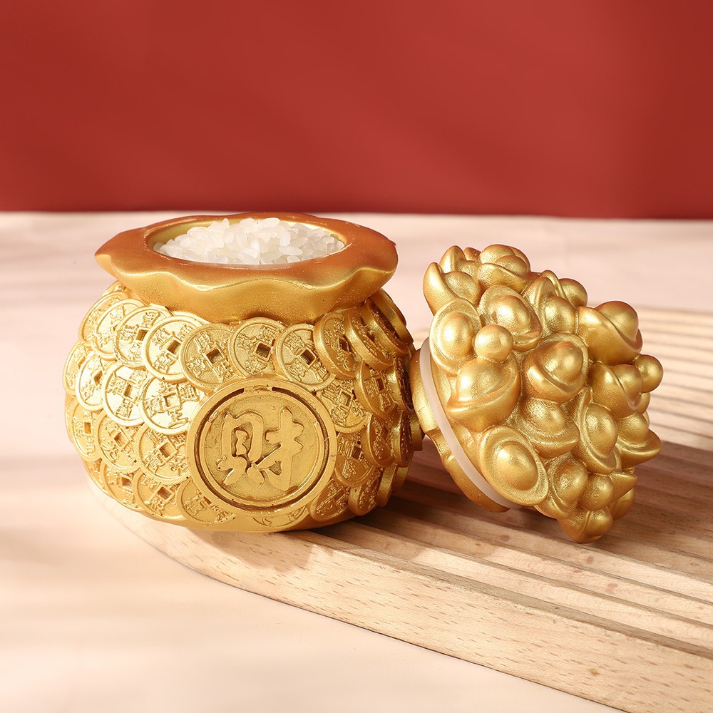 春节办公桌面招财聚宝盆树脂摆件汽车中控台车载金元宝钱袋工艺品