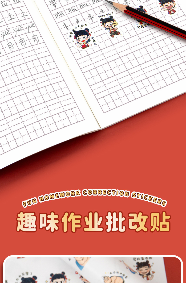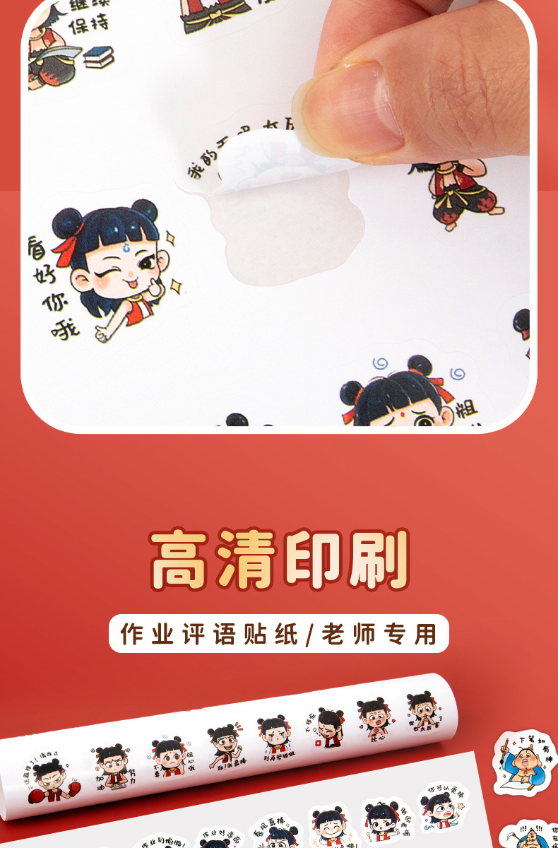 教師の添削作業の表情はステッカーを包んで、面白いコメントを貼って、学生の励ましの志を励まして、ステッカーのラベルを貼って卸売りします。