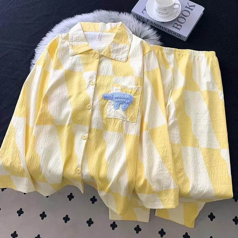クロスボーダー卸売夏の新しいクラウドコットンカーディガンラペル甘いパジャマ女性の半袖ショーツホーム服かわいい犬