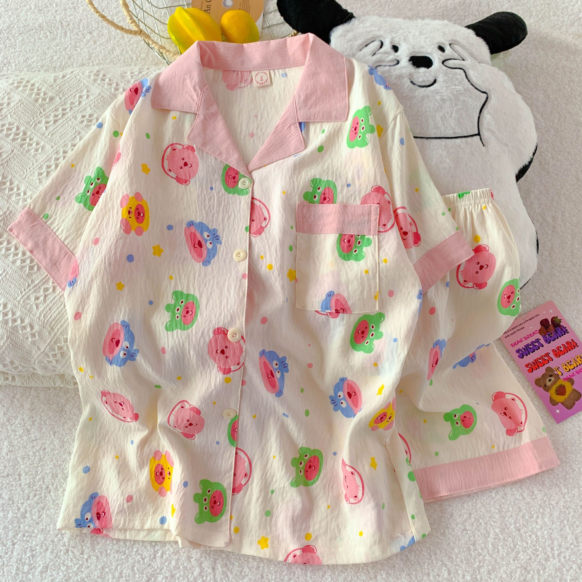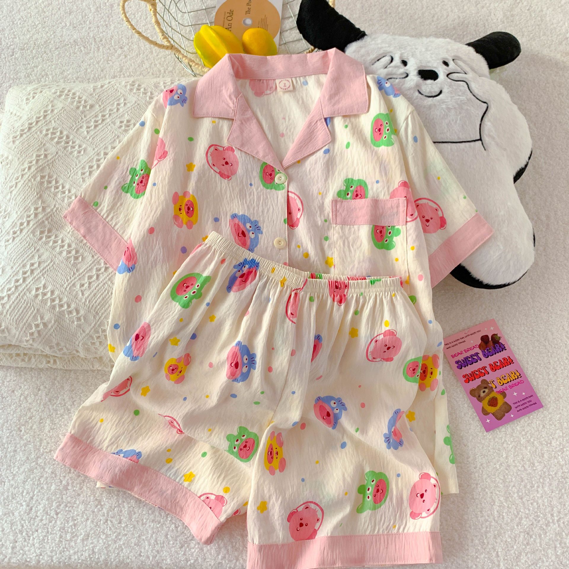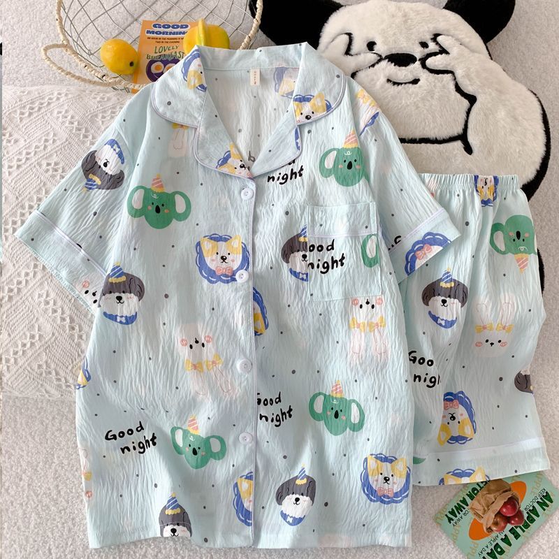 クロスボーダー卸売クラウドコットンパジャマ女性の夏の新しいカーディガンラペル半袖ショーツ甘くてかわいいホームウェアセット