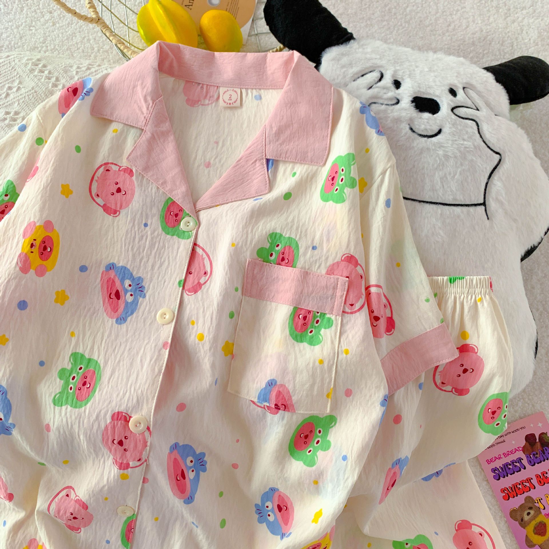越境卸売ベトナムパジャマ女性の夏韓国語版漫画甘くてかわいい学生プリントラウンドネッククラウドコットンインスタイル