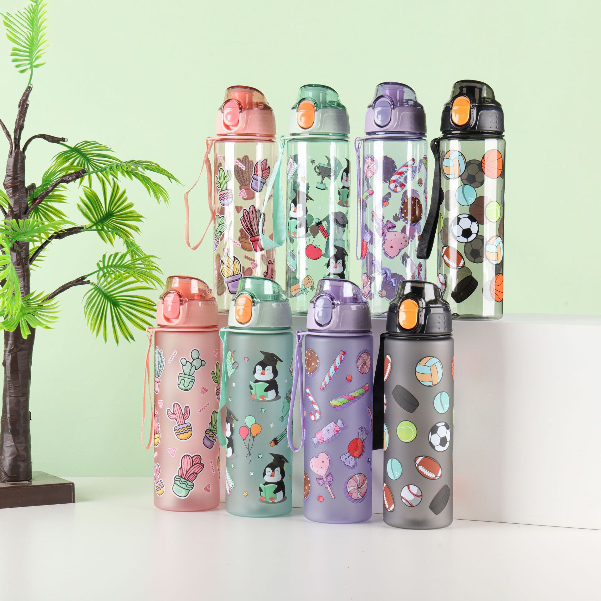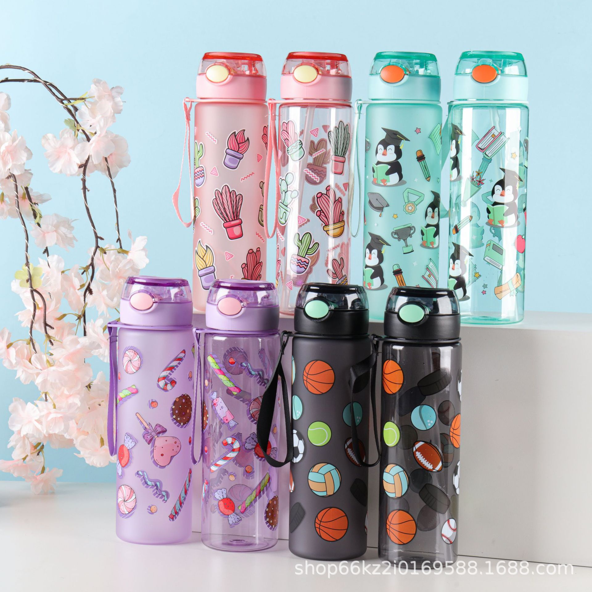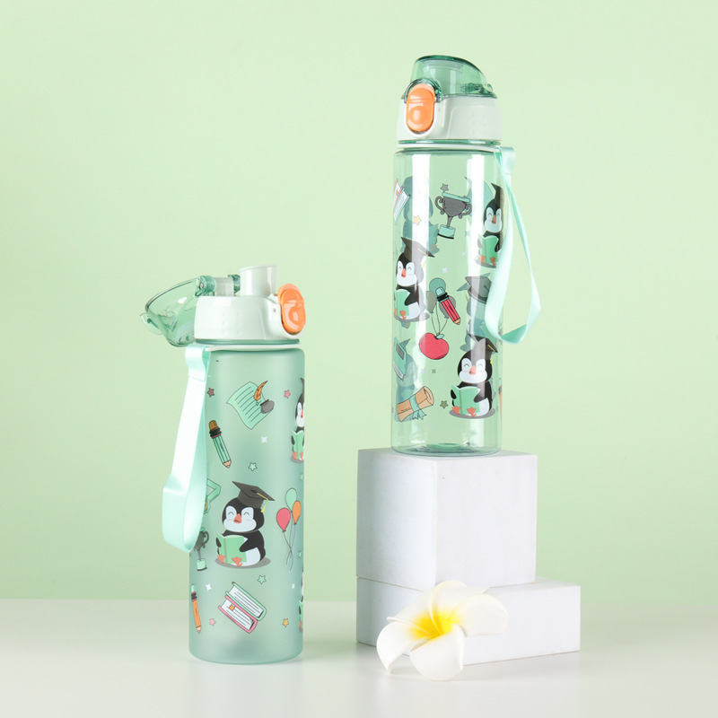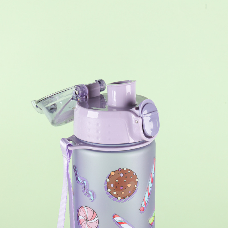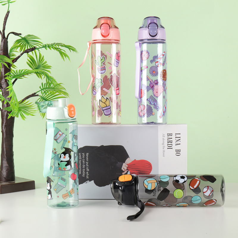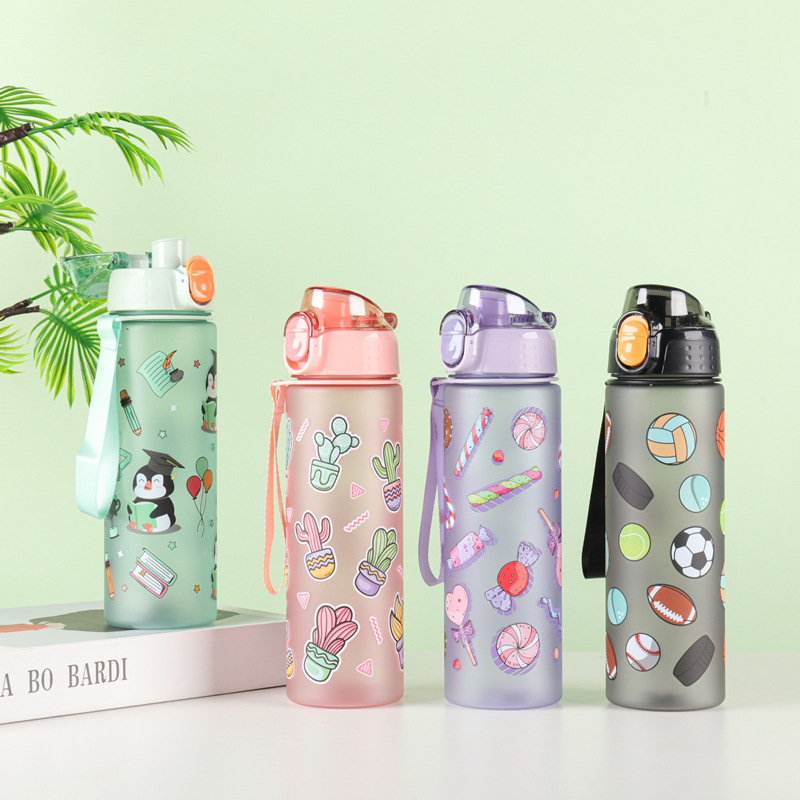 漫画子供アウトドアスポーツケトルポータブルポータブルポータブルプラスチックストローカップ大容量かわいい印刷スペースカップ