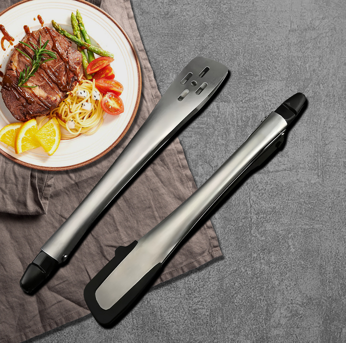 新品430ステンレス食品クリップ11インチ一体クリップバーベキュークリップ焼肉クリップ食品クリップ屋外キャンプバーベキュー