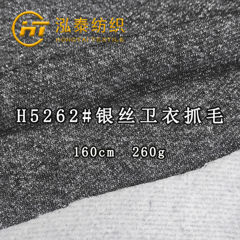 260克银丝卫衣抓毛布料银线毛圈布拉毛潮牌秋冬面料银丝加绒卫衣