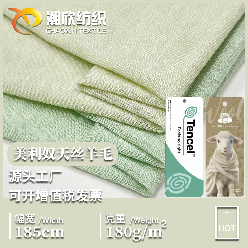 メリノテンセルウール生地 180 グラムリヨセルウールプルアップレディースボトリングシャツ Tシャツニット生地