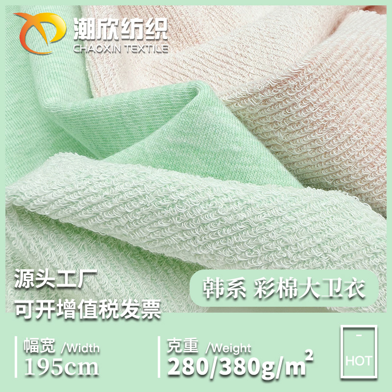 批发 春秋280G彩棉小毛圈帽衫布料 CVC380G彩花纱大卫衣针织面料