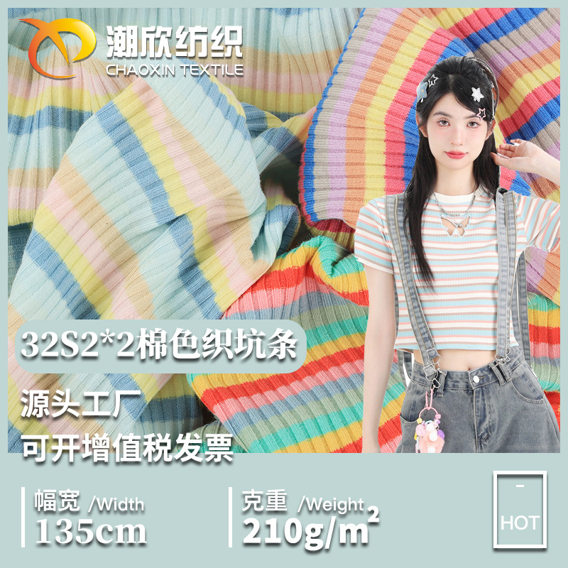 卸売り32S2*2綿色織坑条ねじ4*3綿スパンデックスストライプ汗布ドーパミンニット生地