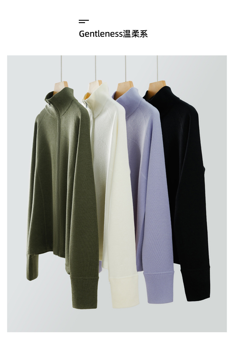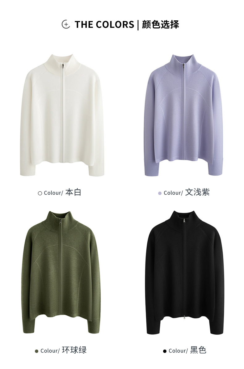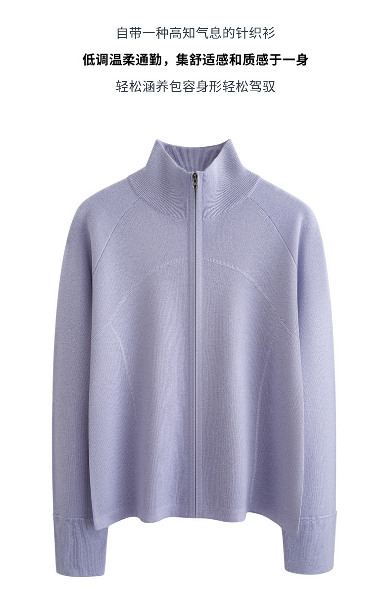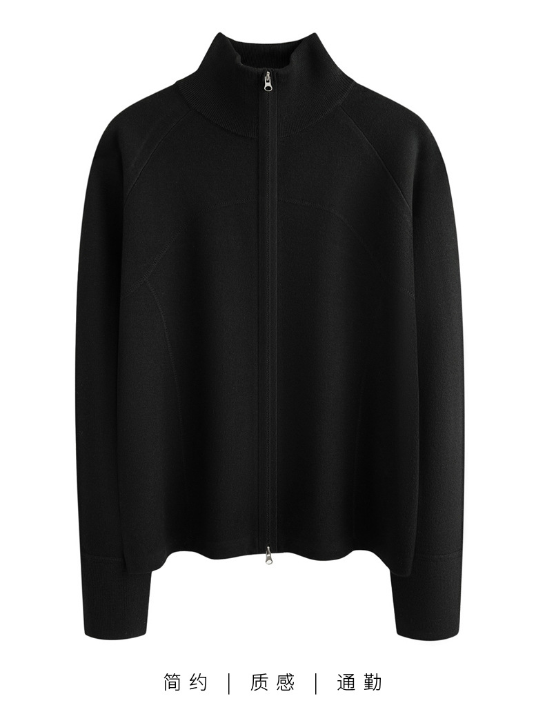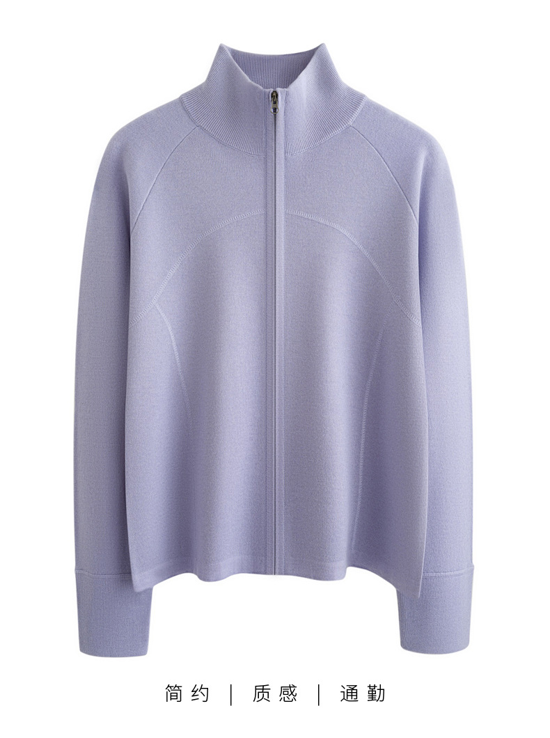 2025年春夏新作精紡ウール立襟ニットカーディガンファスナー純色気質スポーツ上着女性