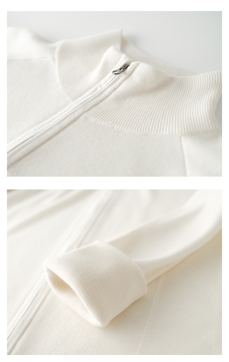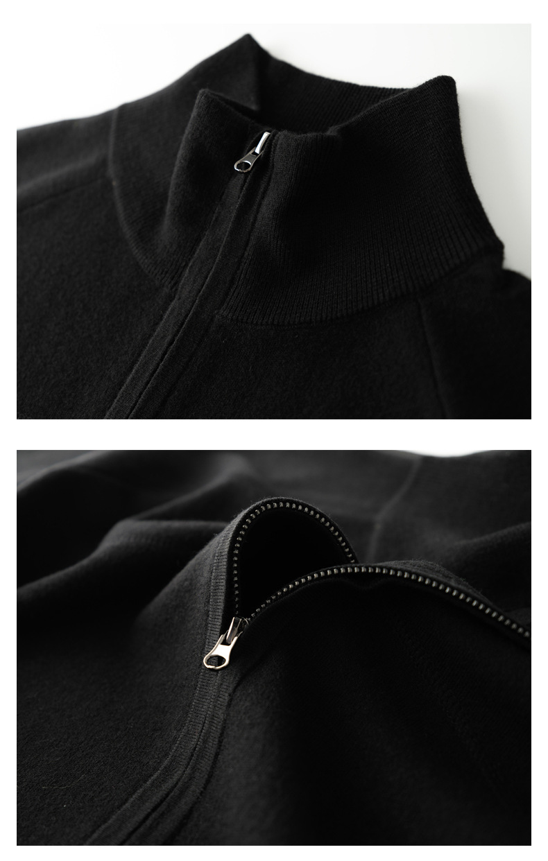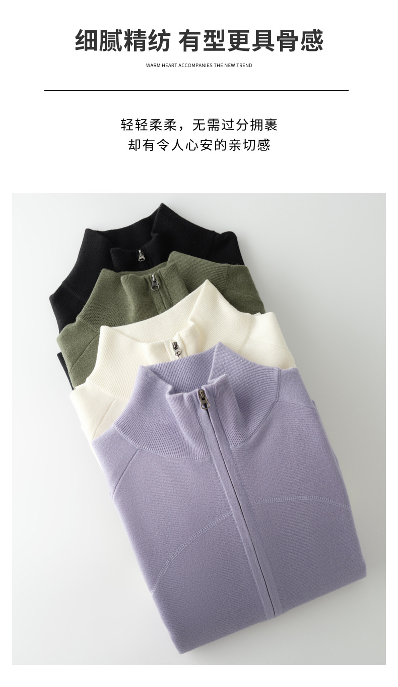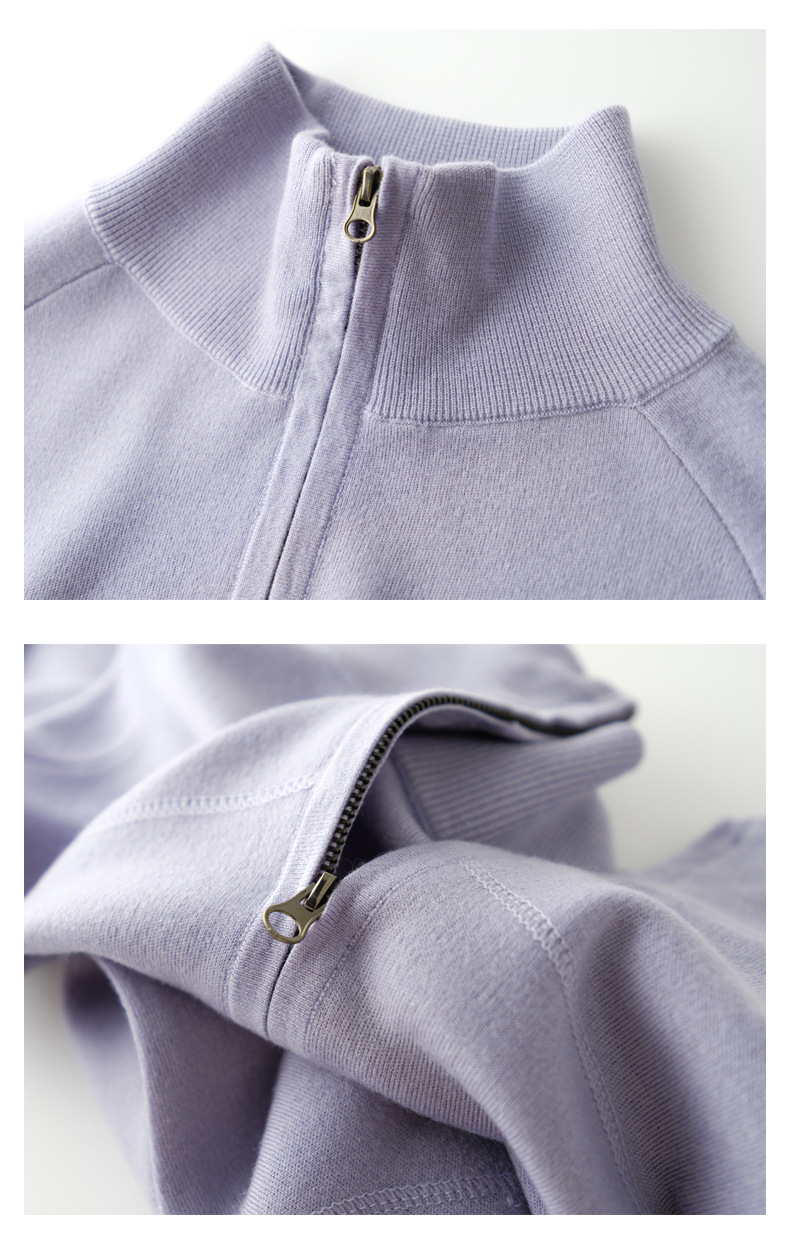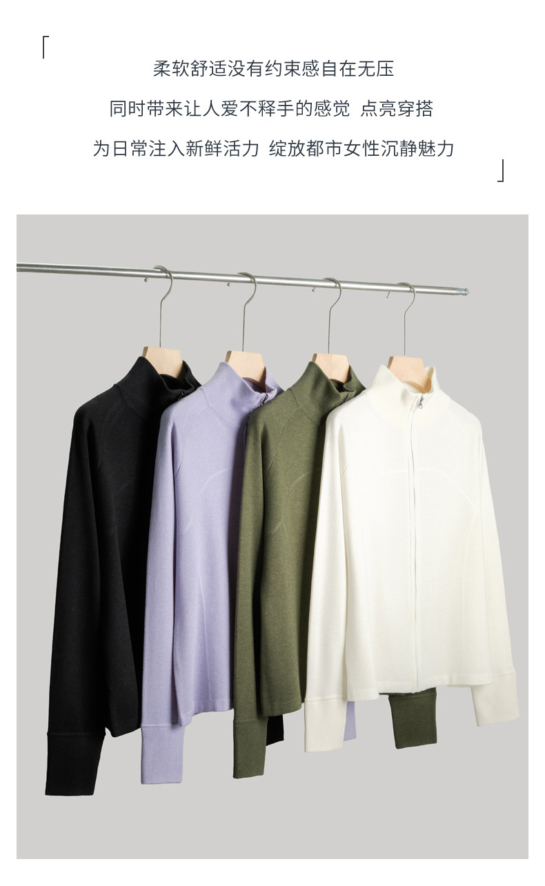 2025年春夏新作精紡ウール立襟ニットカーディガンファスナー純色気質スポーツ上着女性