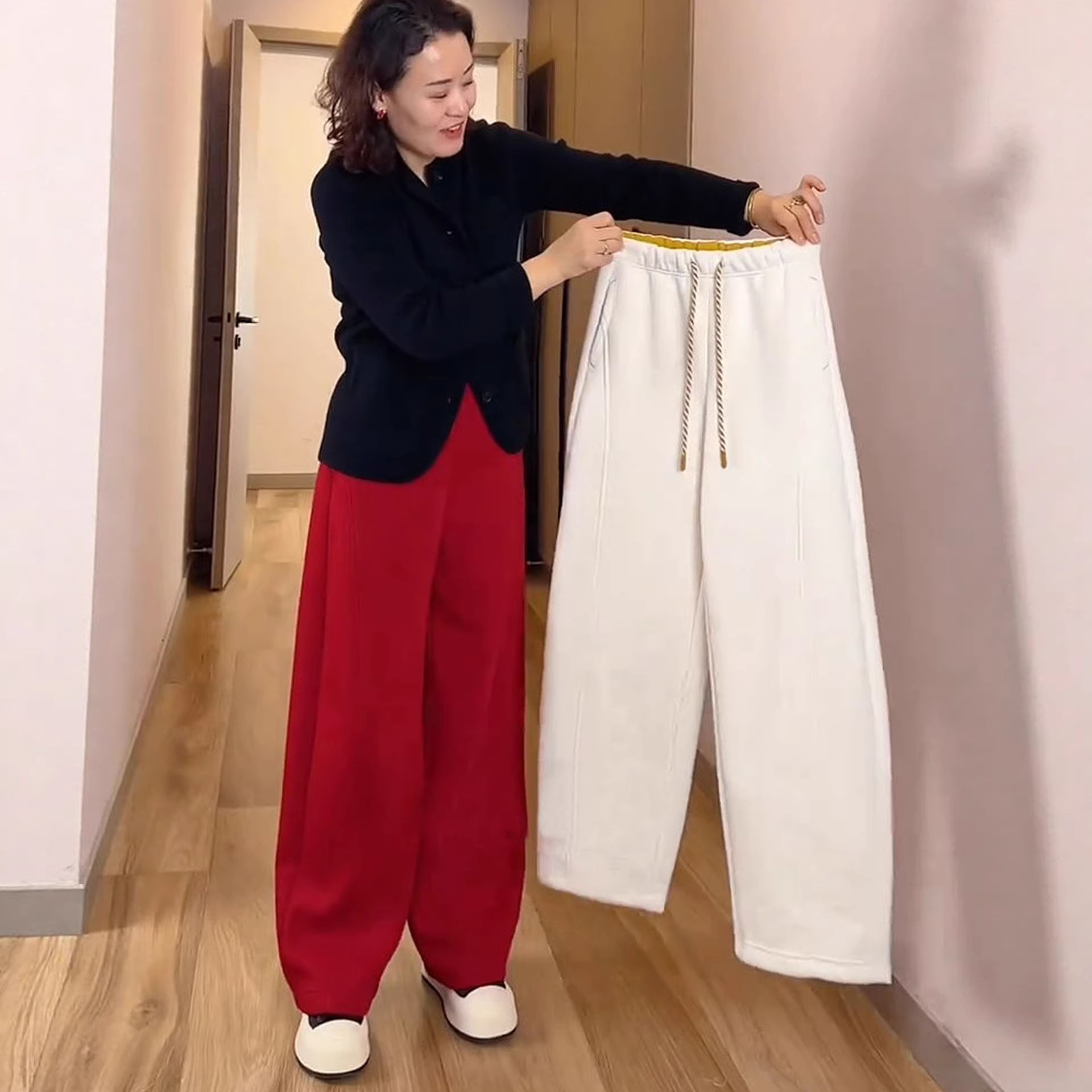 欧洲站2025冬季新款宽松弯刀裤女抽绳加绒加厚高腰显瘦休闲卫裤子