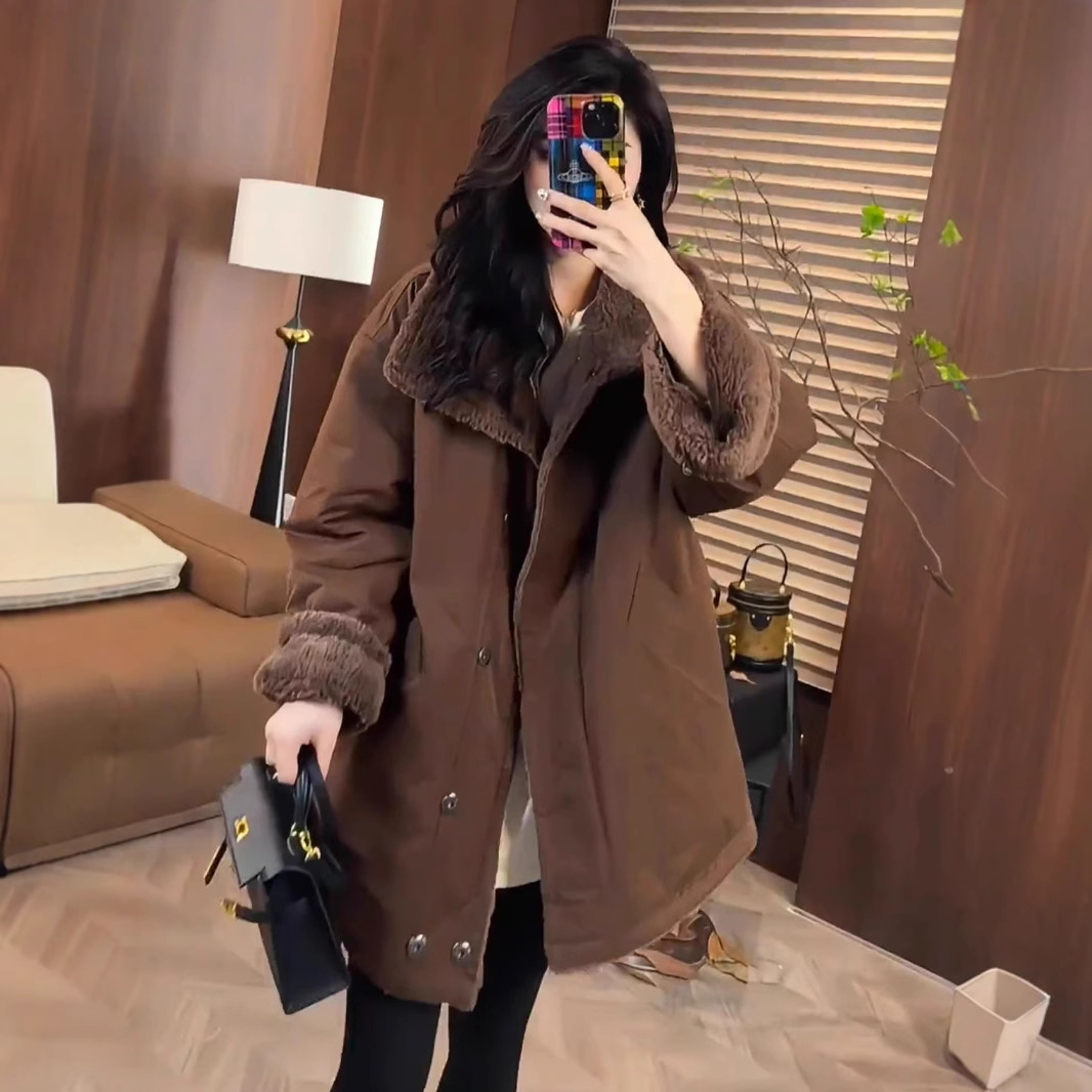 韓国版のカジュアルな帽子のぬいぐるみのコートの女性2024冬の新型はゆったりしています。