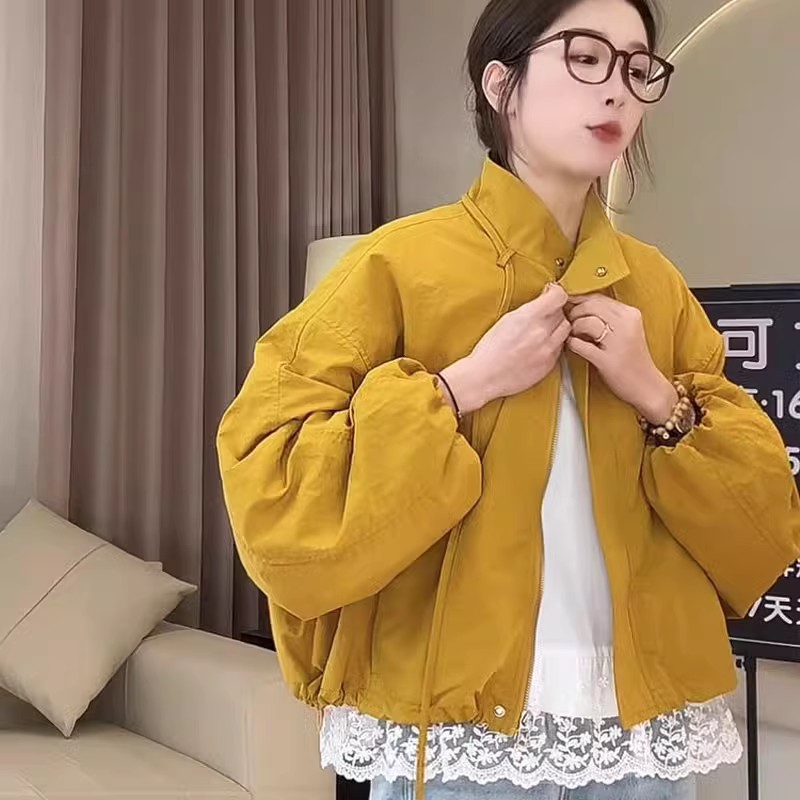 小衆高級感立襟コート女性ショートタイプ2025春秋新作韓国系chi紐引き小柄ジャケット