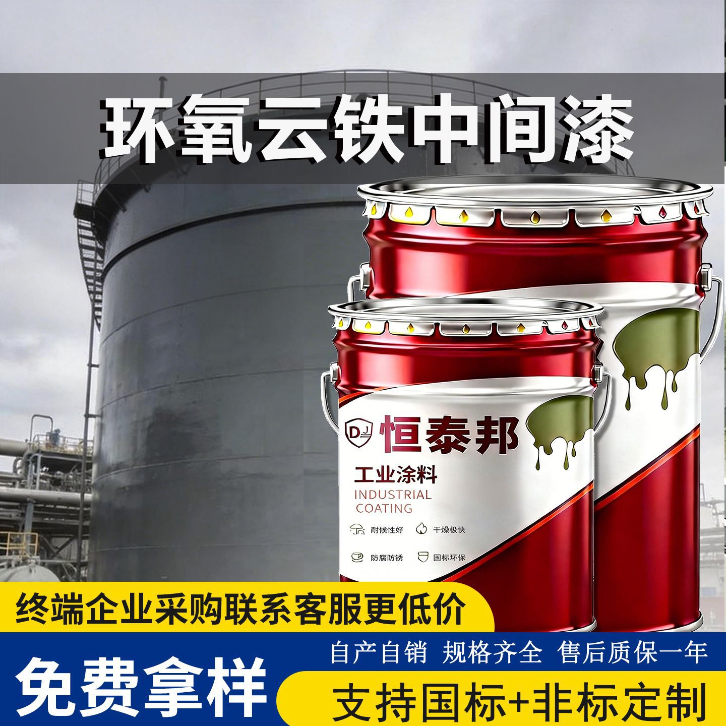 环氧防腐防锈漆桥梁码头钢结构工业油漆机械设备环氧云铁中间漆