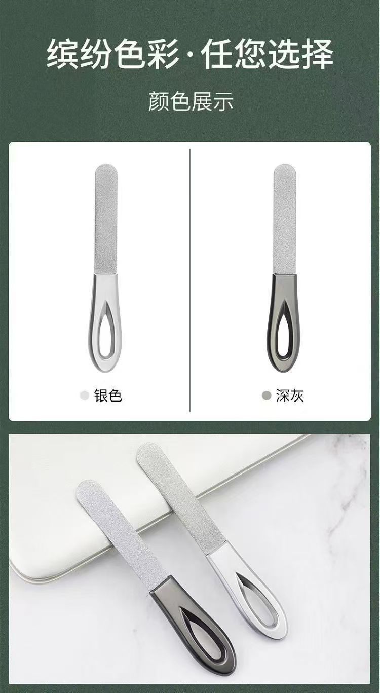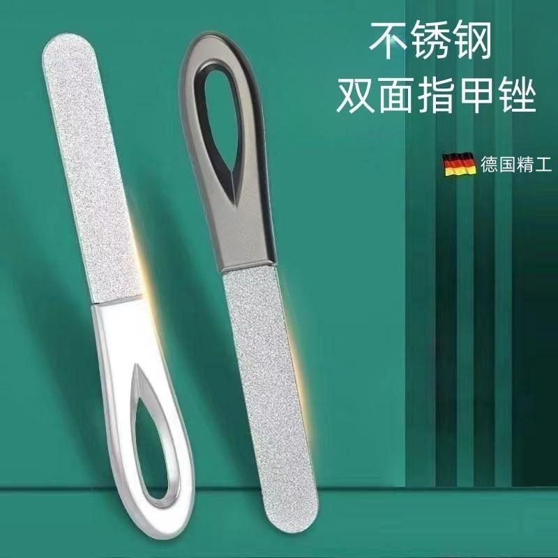 德国精工指甲锉刀不锈钢双面磨甲器打磨修型美甲工具高档指甲锉条