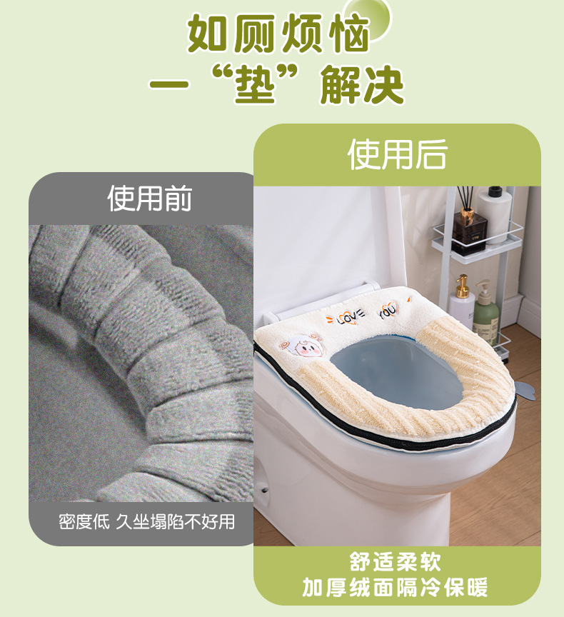 马桶垫冬季家用冬天可爱坐垫可水洗秋冬加厚拉链款坐便套厕所垫子