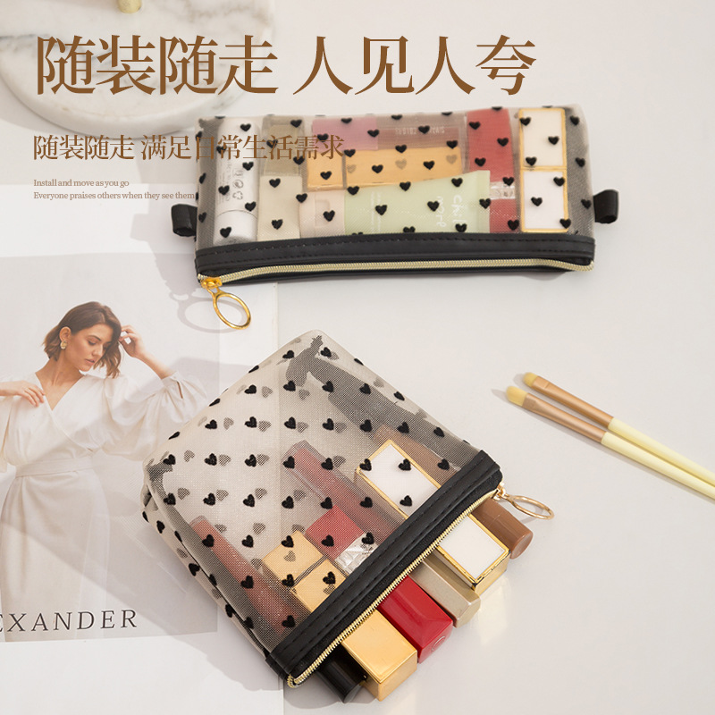 新しい携帯ミニ収納バッグ植毛愛網糸化粧バッグ口紅化粧バッグ筆袋文房具バッグ