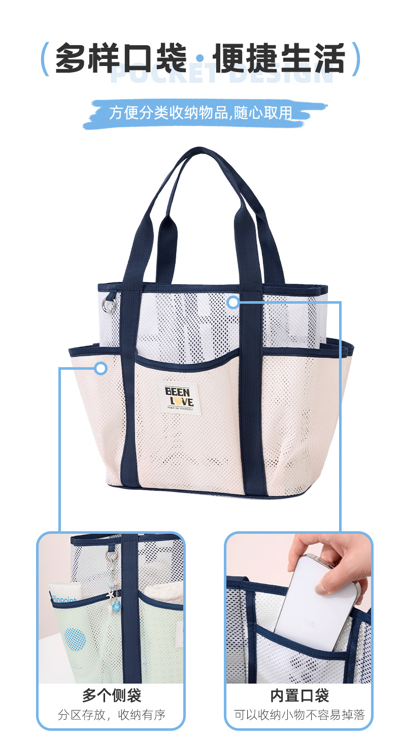 新型の網紗の手は化粧バッグを持ってアウトドア旅行の大容量のカバンの中で収納して水泳のフィットネスビーチのカバンを持ちます。
