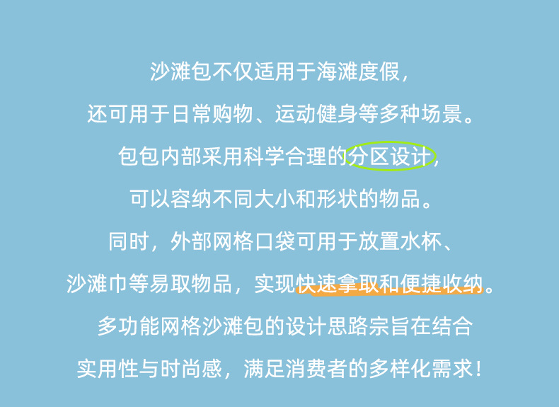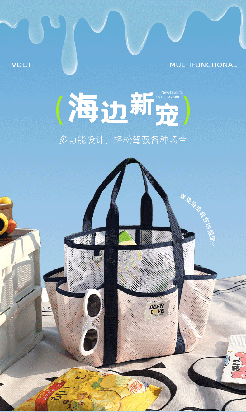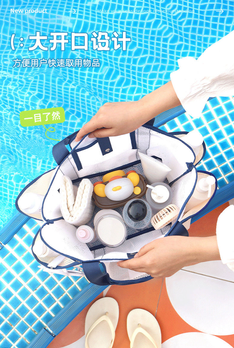 新品大容量ハンドバッグハワイトートビーチバッグ夏アウトドアメッシュハンドバッグフィットネス水泳バッグ