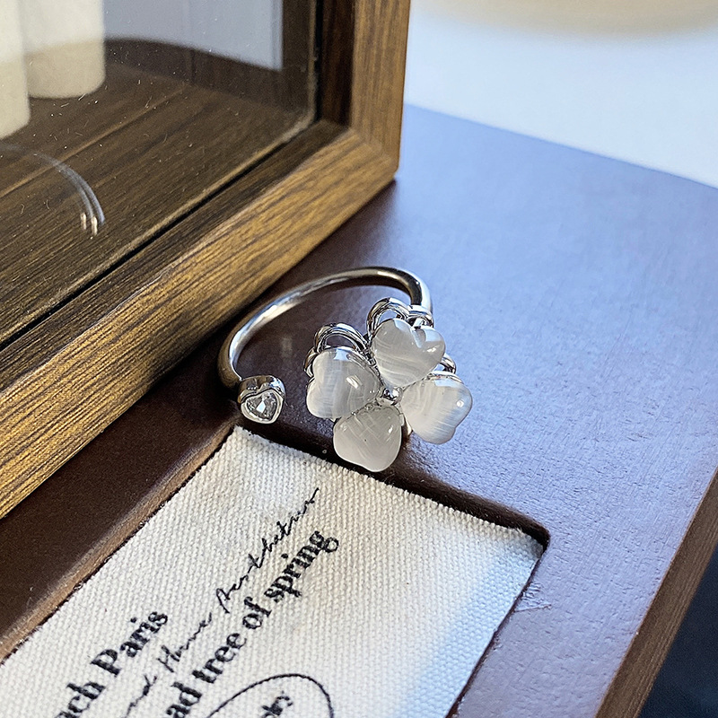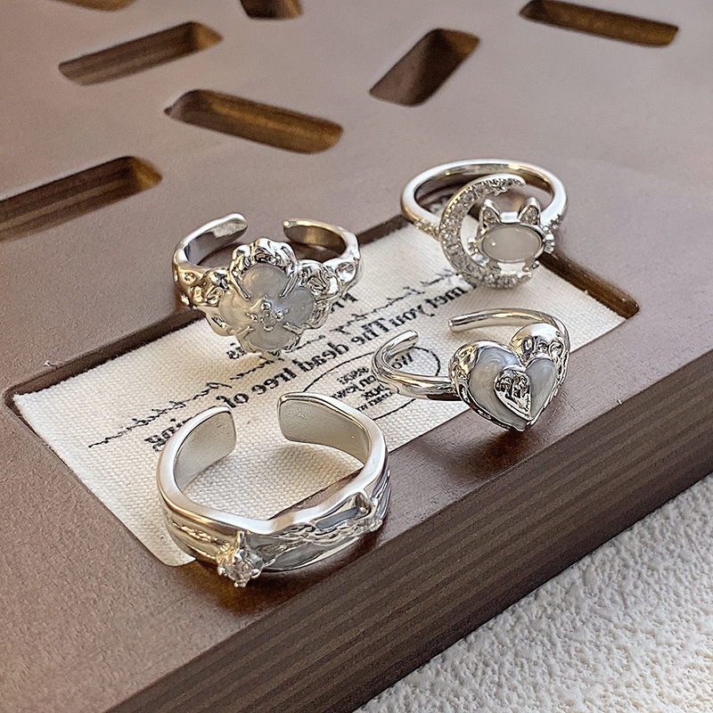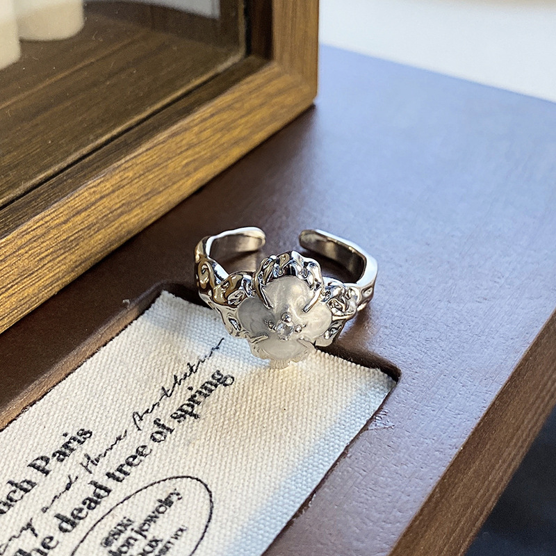 「ベリーパウダーフラワーシリーズ」クリームスイートガールスタイルフラワーオープンリングレディースファッション絶妙なニッチ多用途外国風リング