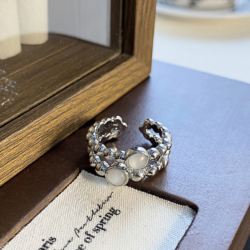 フレンチ優しい秋冬コーデオープンパールリングins冷淡风ファッション百合高级感小众指轮