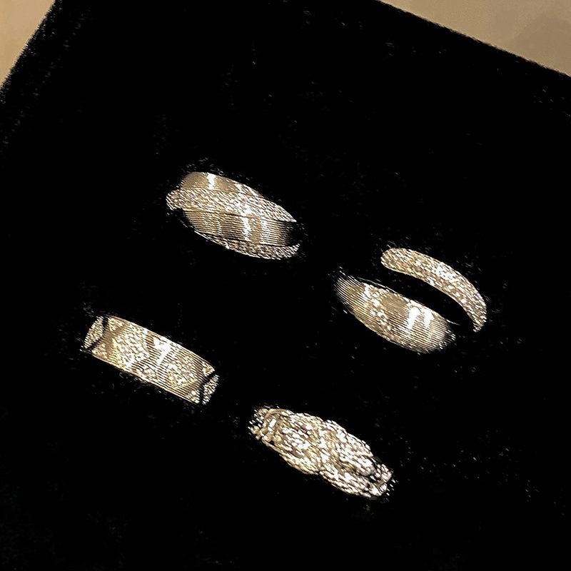 シンプルなファッションの幾何学的なダイヤモンドのジルコンの開口指輪の小さい大衆の軽い贅沢な高級感の百合insの冷たい風の装飾