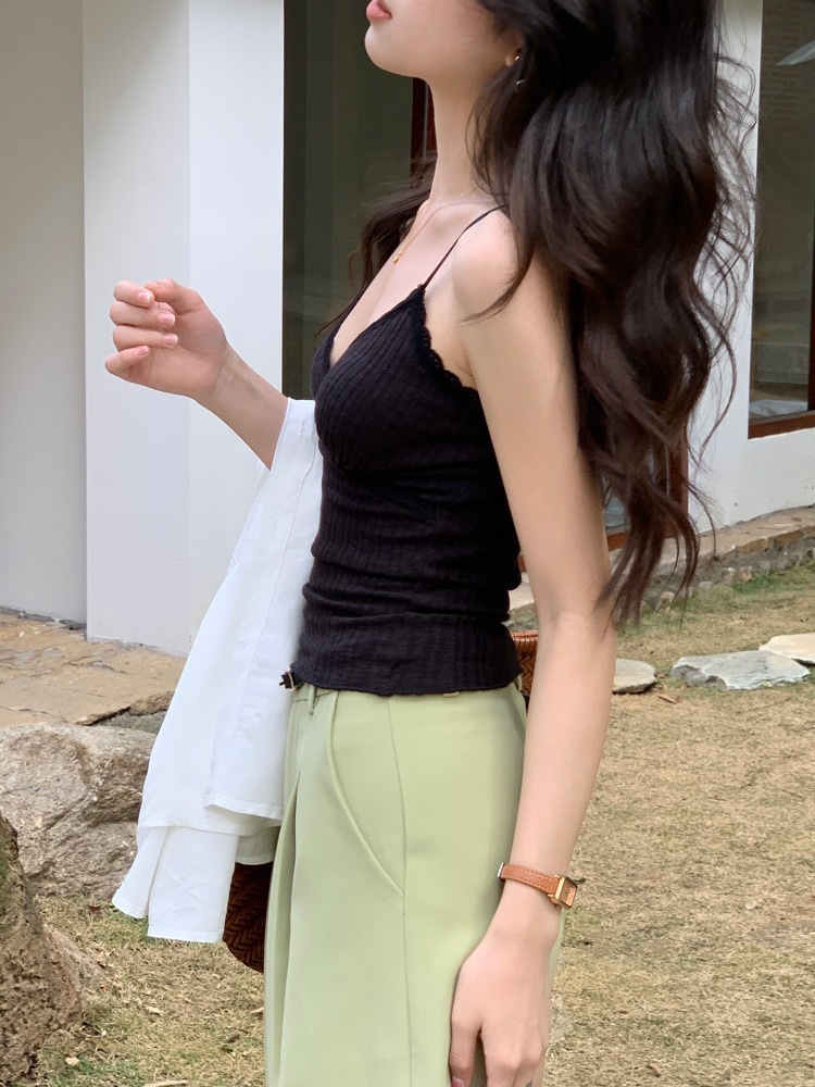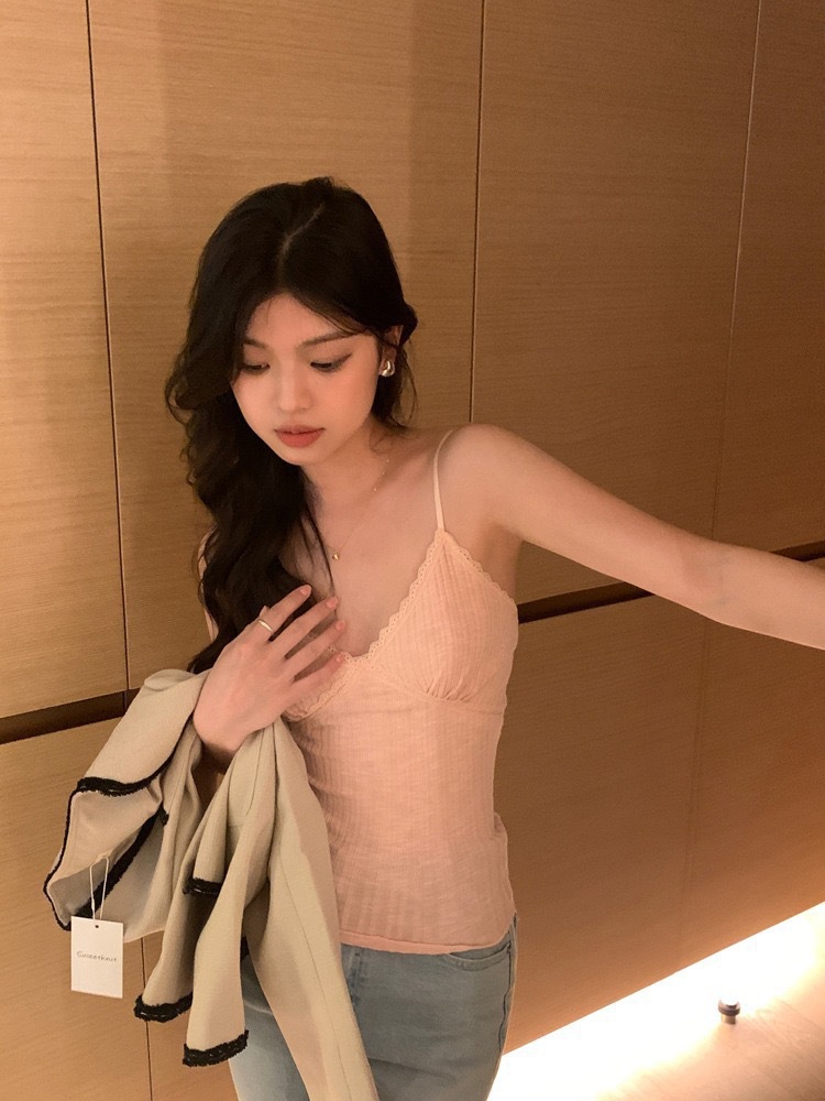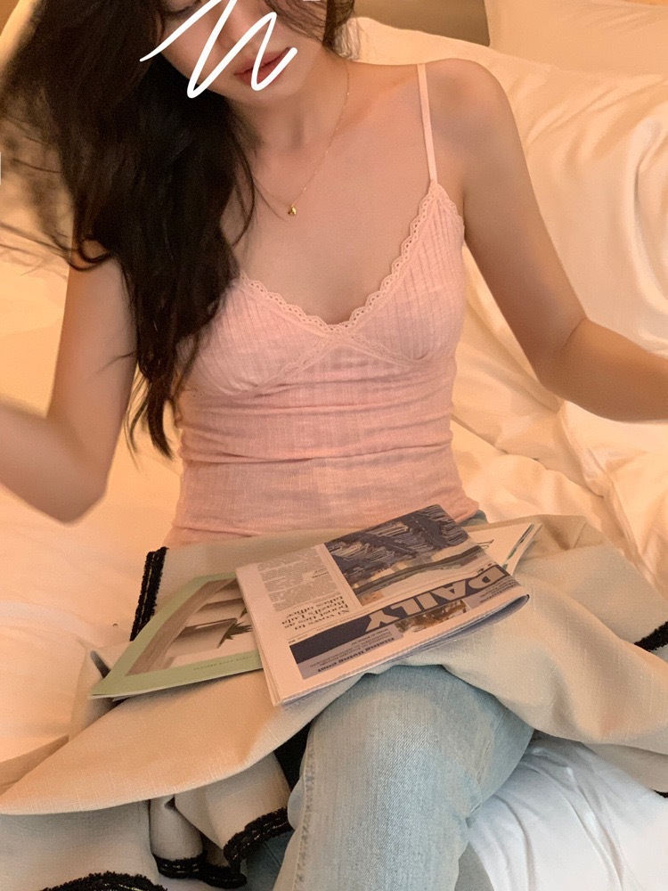 纯欲蕾丝磨毛吊带背心女秋冬带胸垫外扩显胸保暖外穿内搭抹胸上衣