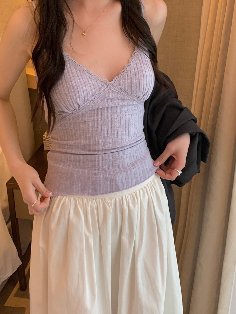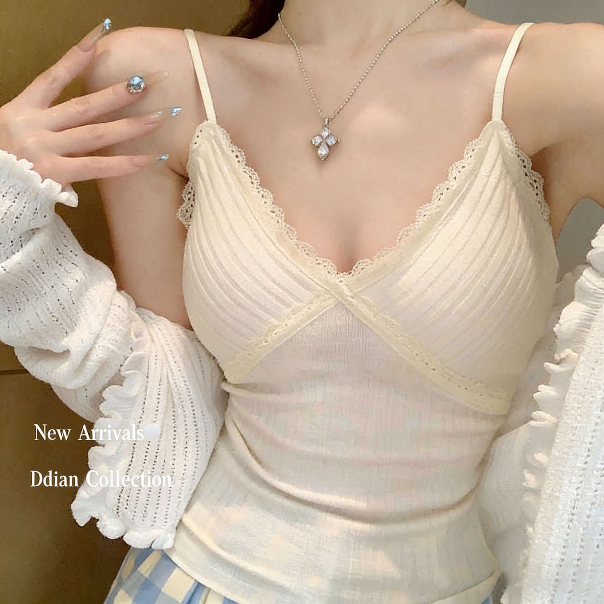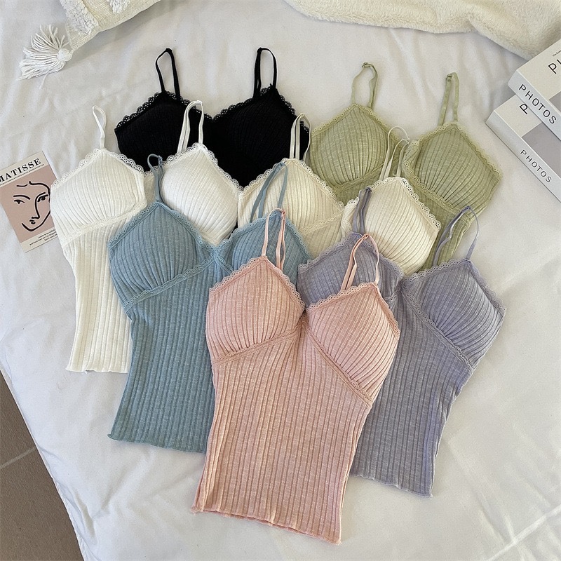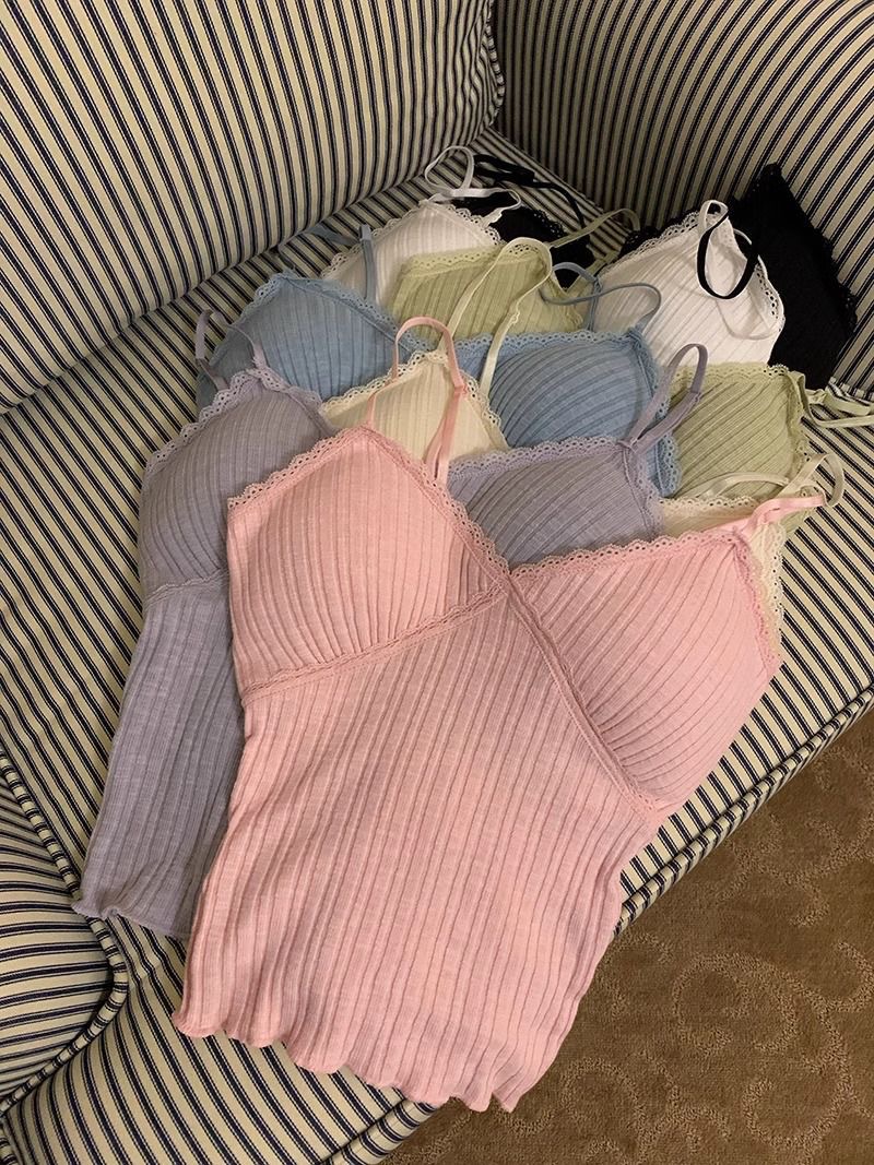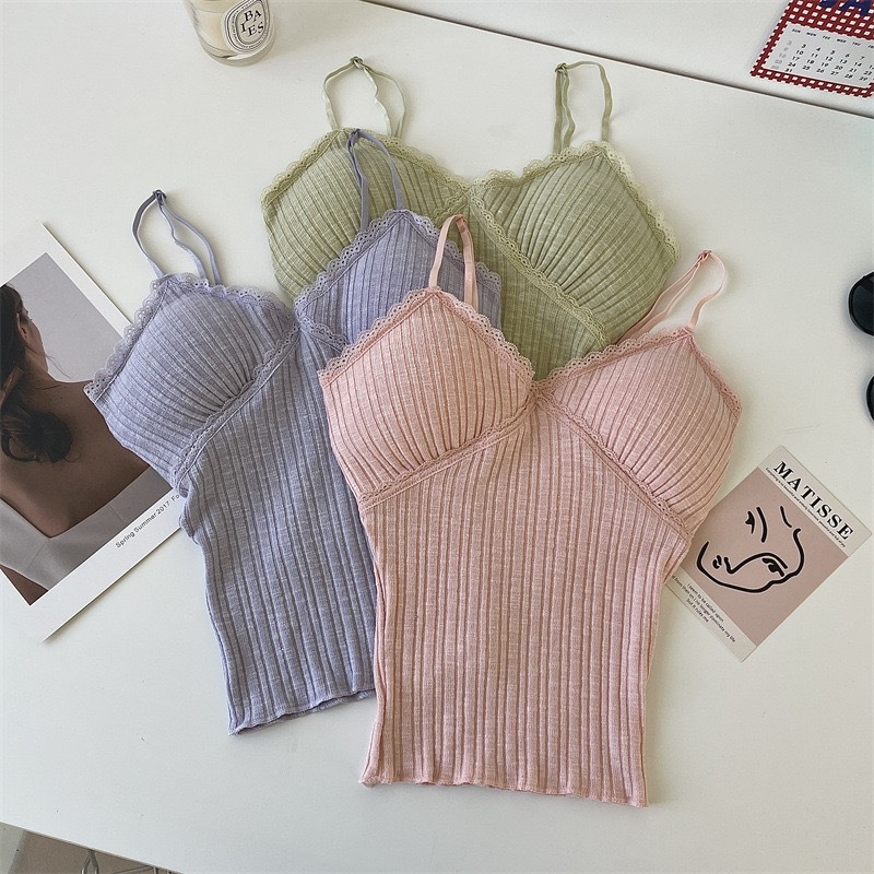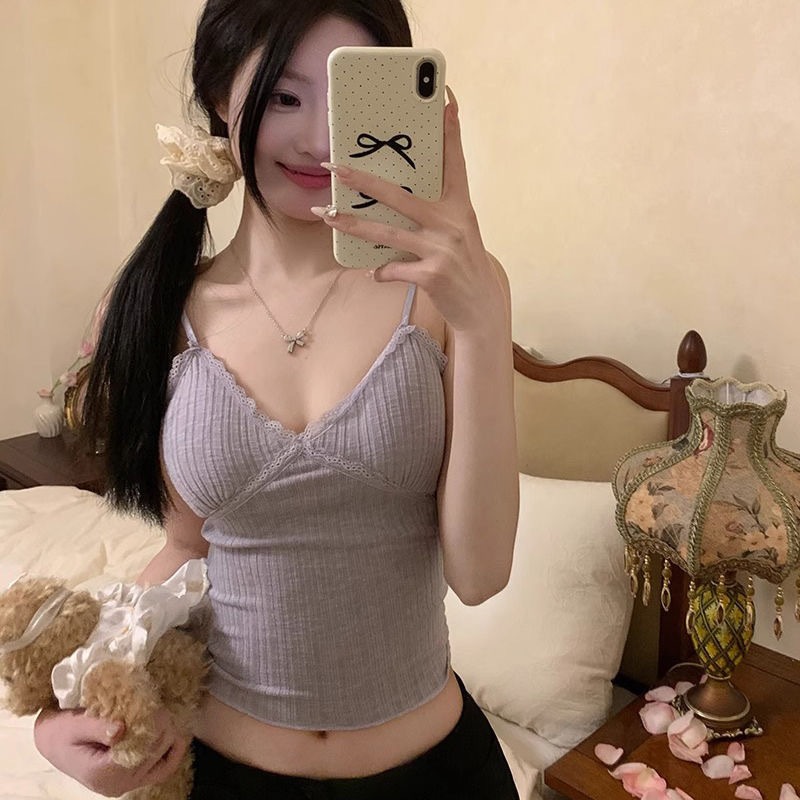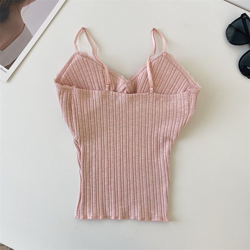 女性用の胸パッド付きの純粋な欲望スタイルのレースのキャミソール、インナーとアウター、美しい背中、スリムで甘い女性用ボトム下着