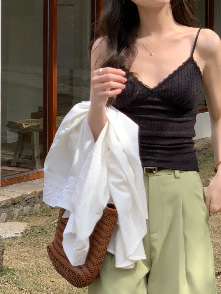 白いレースbm百合のストラップの小さいベストの女性の新型のフランス式の甘辛の中は底を打って胸のパッドの上着をつけて外に着ます。