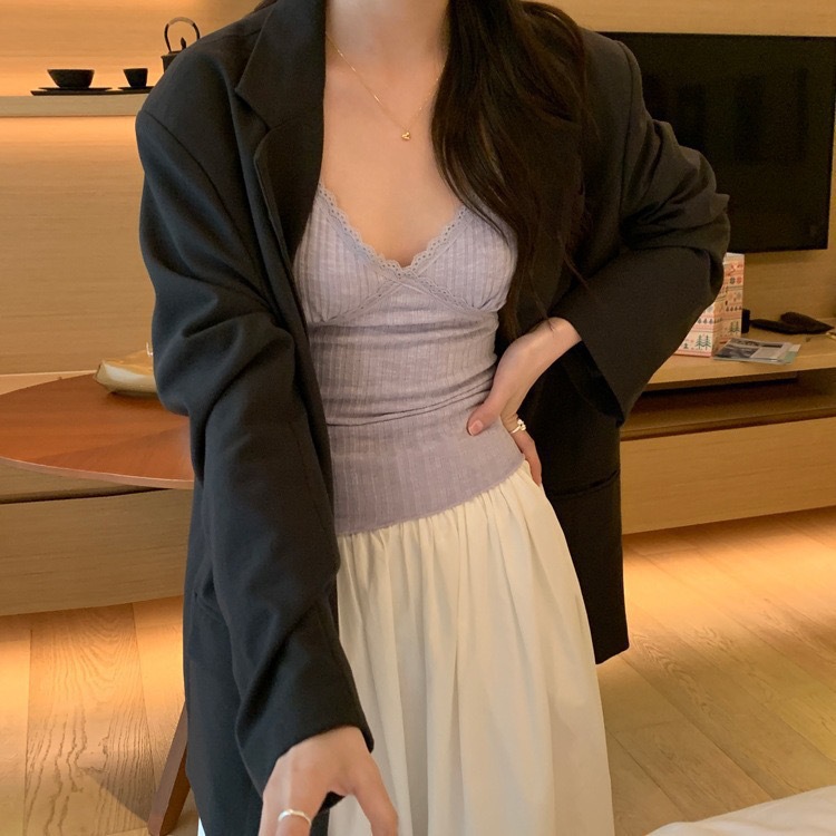 趙露思同項の韓国版レースのストラップは胸のクッションを持っています。