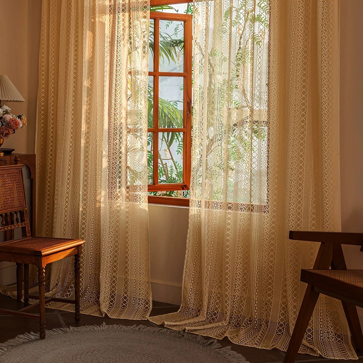波西米亚风复古透光窗纱阳台飘窗纱帘亚马逊速卖通窗帘厂家批发