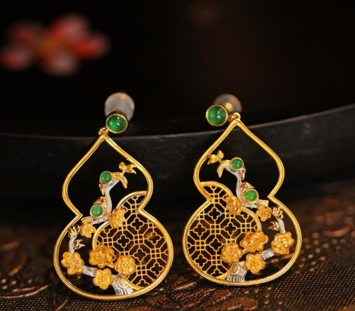 国潮の高貴な女性の金の花の糸はエナメルの疲れた糸の工芸を象眼して宝の宮廷の金の梅のイヤリングのアクセサリーの卸売りを飾ります。