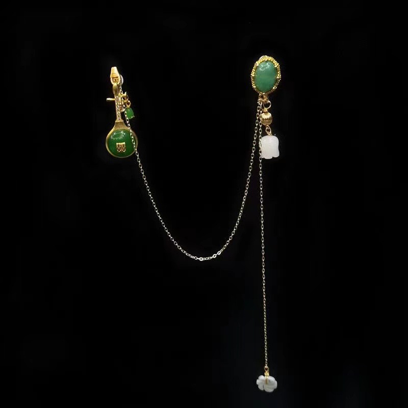 古風なスタイルの琵琶、中国風の旗袍アクセサリー、襟飾り、天然東陵玉のタッセル、レトロなペンダント卸売