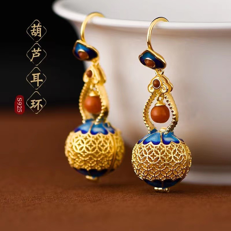 高級感個性百合中国風メッキ古法金レトロ宮廷ひょうたんイヤリング女性イヤリング卸売り