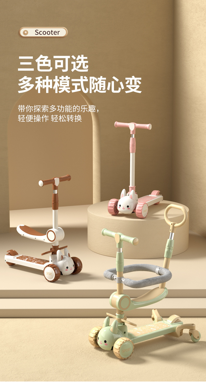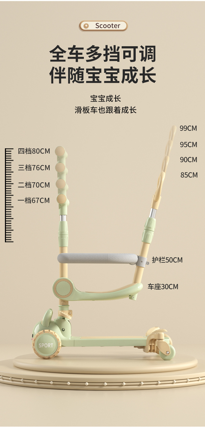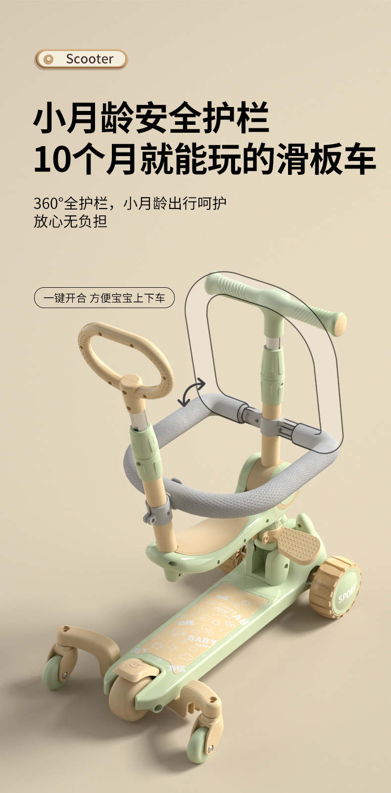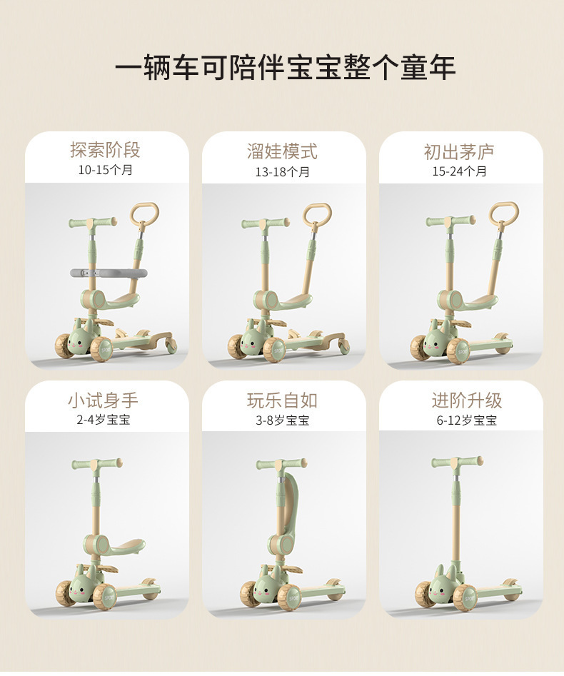 子供用スクーター1-3-8歳の男の子と女の子の六合一はシート付きのガードレール付きの万能車輪に乗ることができます。
