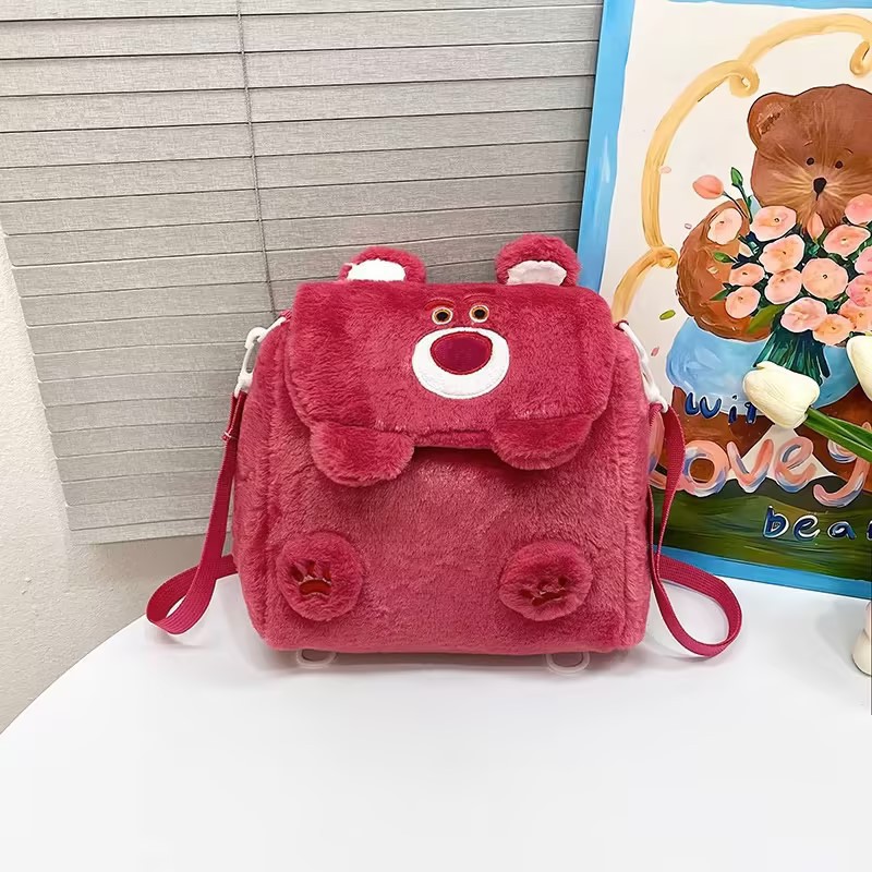 漫画風ぬいぐるみリュックサック、学生の通学用バックパック、在庫あり、かわいいクマのスクールバッグ、短毛ぬいぐるみ素材